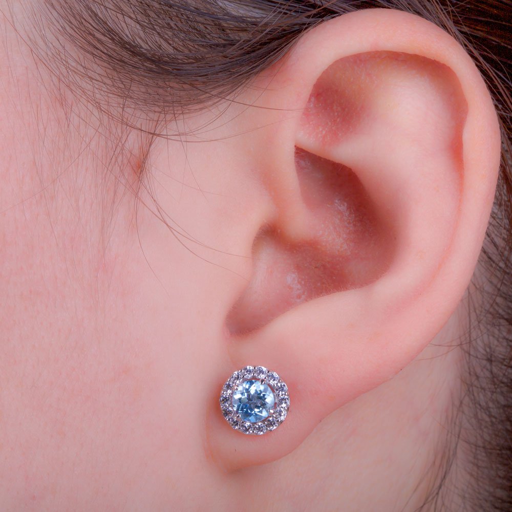 Approx. 1.0ct (2 x 5mm) natural Aquamarine and Approx. 0.47ct (28 x 1.5mm) Laboratory-Grown EF VS Diamonds