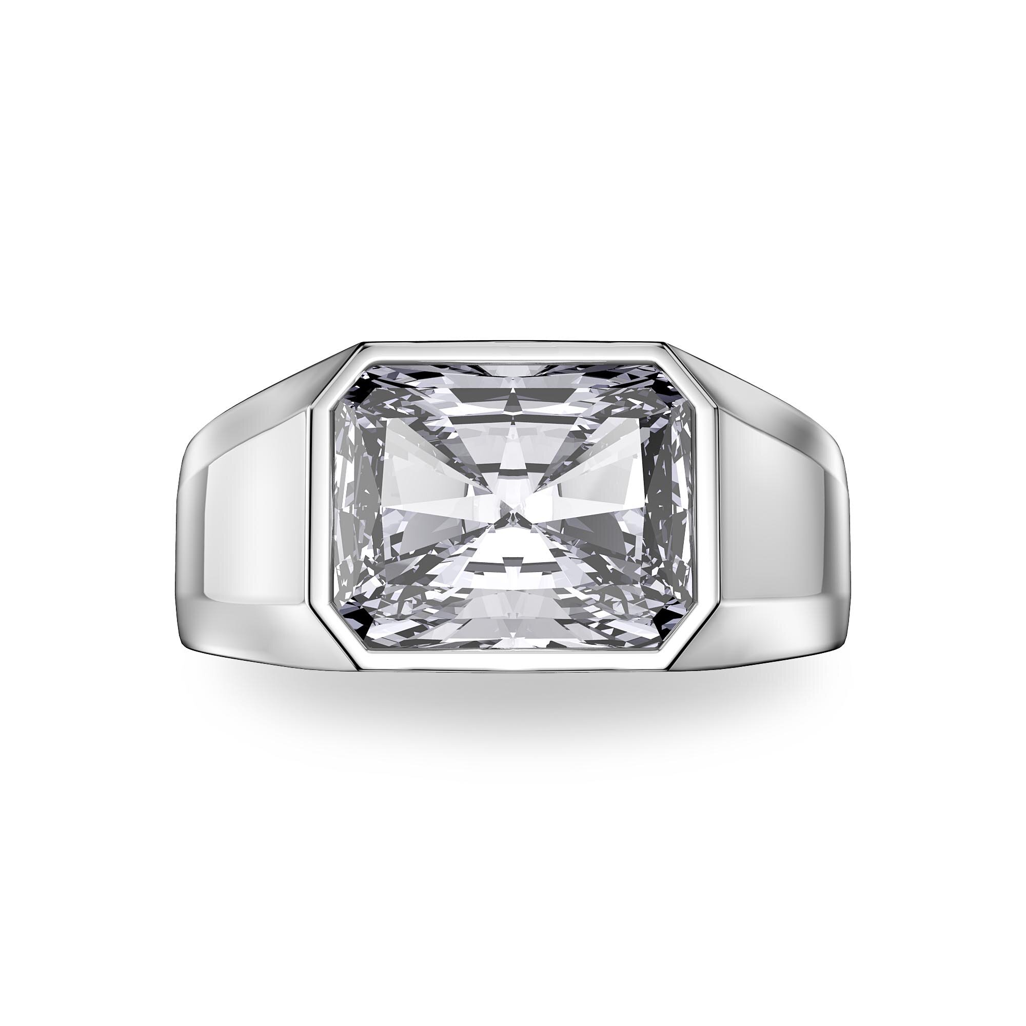 Exquisite 3ct Emerald Cut Solitaire ring in a timeless classic bezel setting available in Platinum Plated Sterling Silver, 9ct, 18ct Gold or Platinum. Simple, contemporary yet classic, this handcrafted signet ring is stylish and bold.