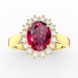 3ct Sapphire Oval Moissanite Halo 18ct Yellow Gold Engagement Diana Ring | Jian London