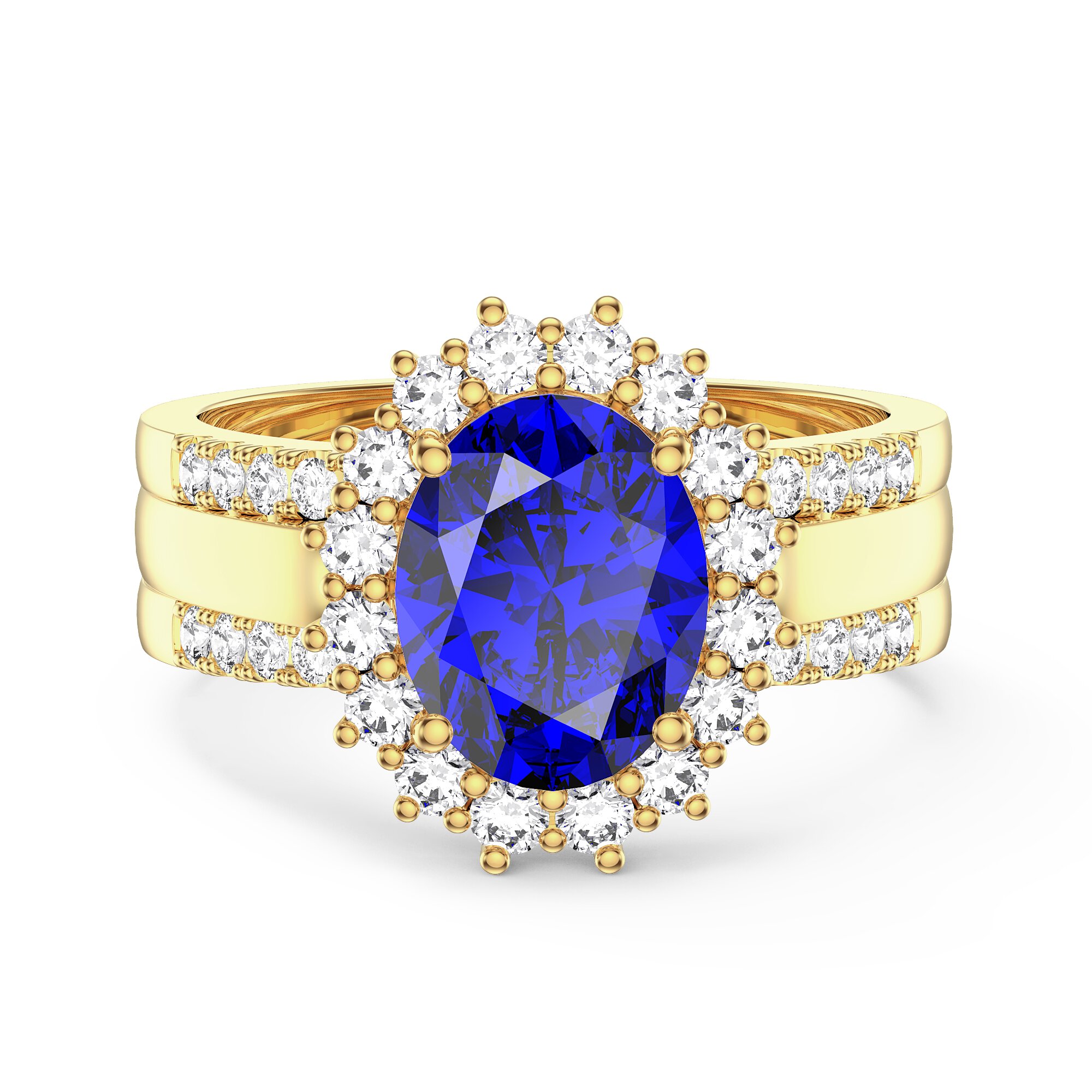3ct Sapphire Oval Moissanite Halo 18ct Yellow Gold Engagement Diana Ring