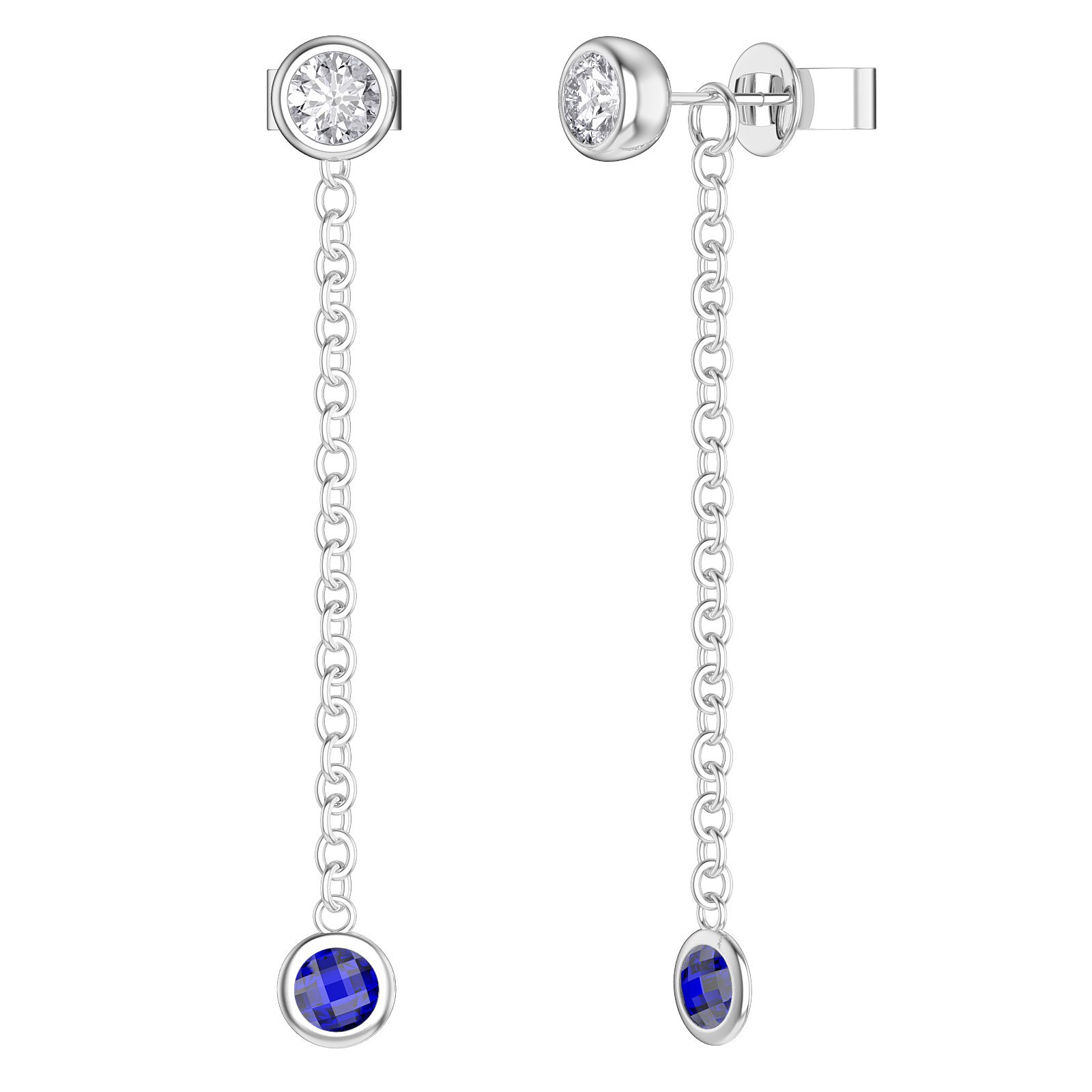 0.5ct Stud (2 x 4mm) Laboratory-Grown White Sapphire and 0.5ct (2 x 4mm) Double Rose Cut Laboratory-Grown Blue Sapphire Drop
