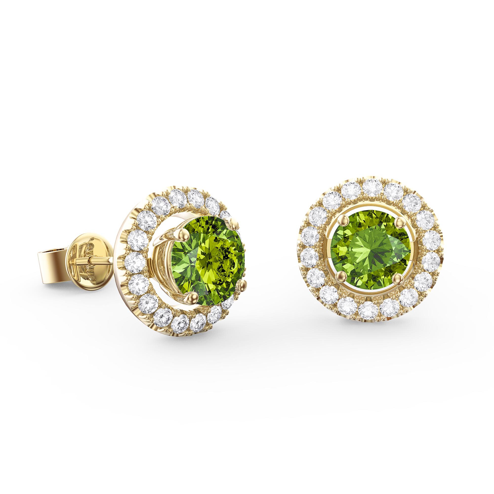 Exquisite Stud and Halo Earring Jacket SetsApprox. 1ct (2 of 5mm) natural Peridot and Approx. 0.22ct (36 of 1.1mm) EF VVS Moissanite