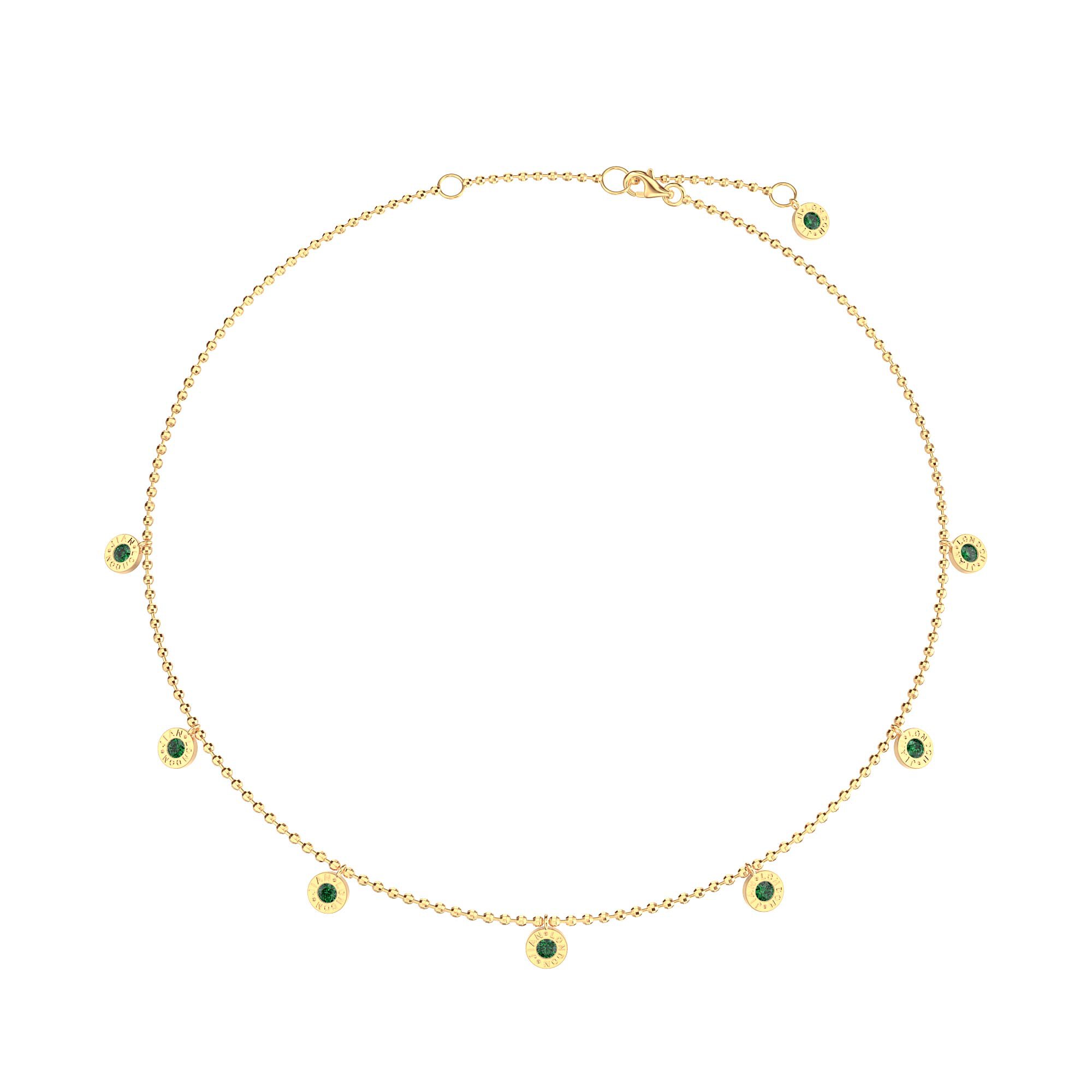 Delicate and sophisticated logo drops spaced along a sparkly faceted disco ball chain. This choker necklace is perfect to wear on its own or to mix with other pendant charms