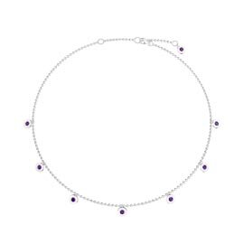 Delicate and sophisticated logo drops spaced along a sparkly faceted disco ball chain. This choker necklace is perfect to wear on its own or to mix with other pendant charms