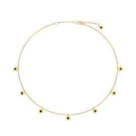 Delicate and sophisticated logo drops spaced along a sparkly faceted disco ball chain. This choker necklace is perfect to wear on its own or to mix with other pendant charms