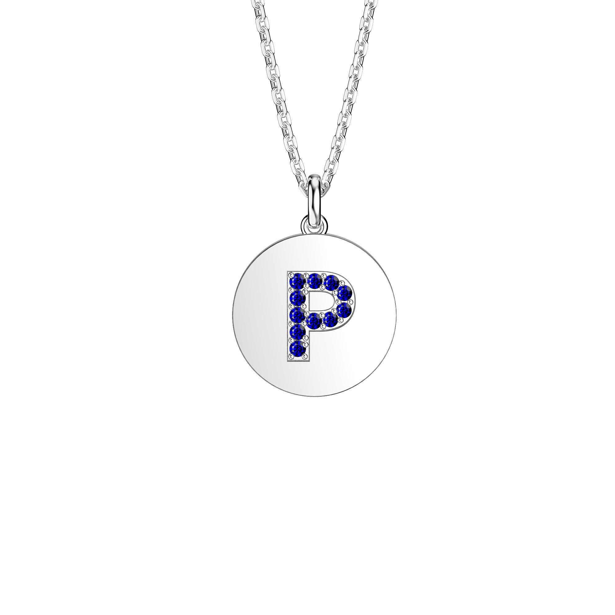 Charisma Sapphire Pave Platinum plated Silver Alphabet Pendant P | Jian London
