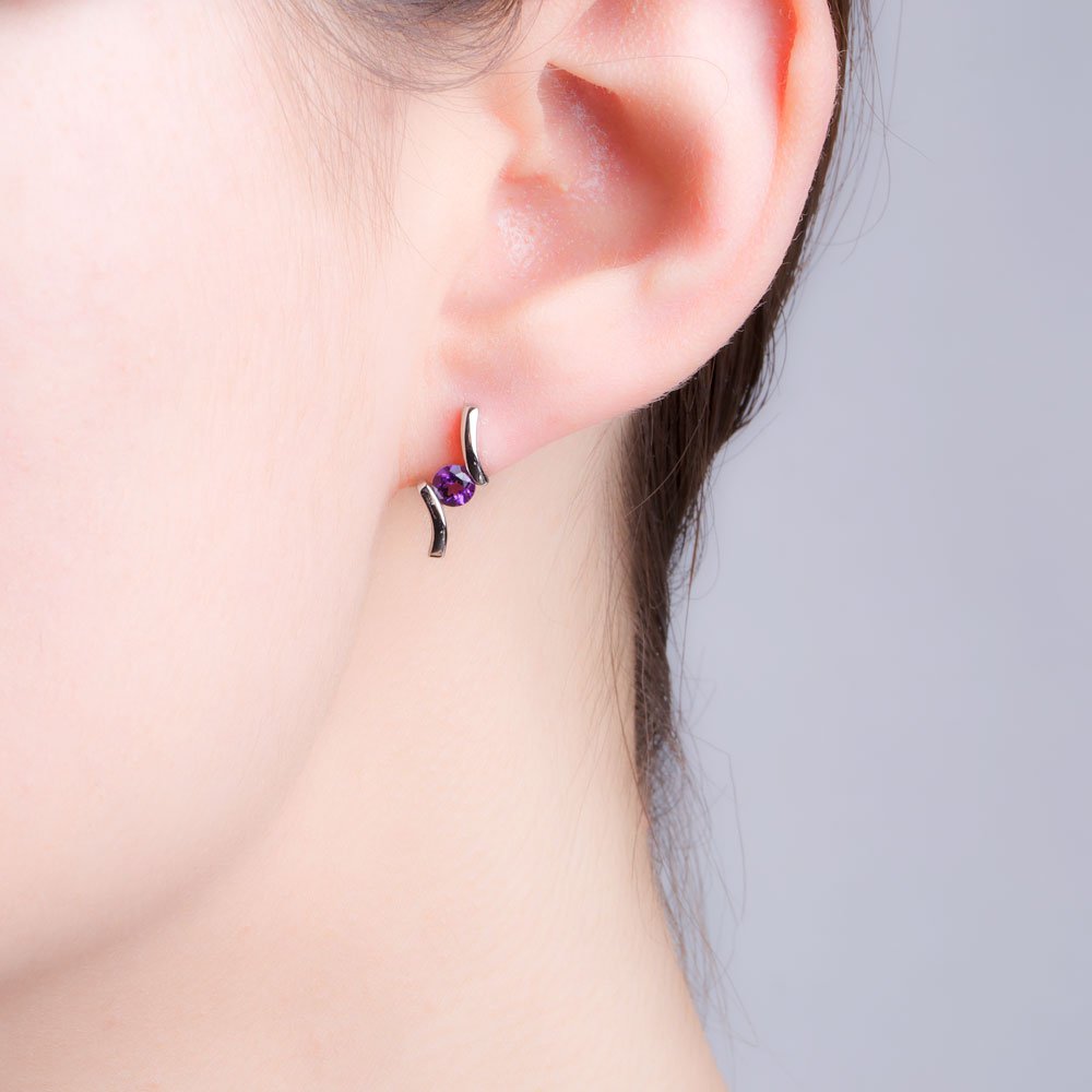 Time for a new go-to piece. Deepen your collection with these Round Brilliant cut Amethyst Earrings. Set in classic and elegant crossover style, these earrings are poised to become your trusted style ally.