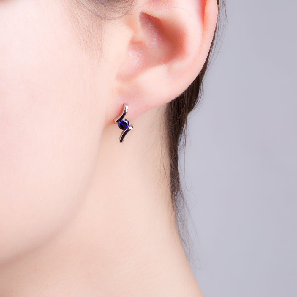 Time for a new go-to piece. Deepen your collection with these Round Brilliant cut Laboratory-Grown Blue Sapphire Earrings. Set in classic and elegant crossover style, these earrings are poised to become your trusted style ally.