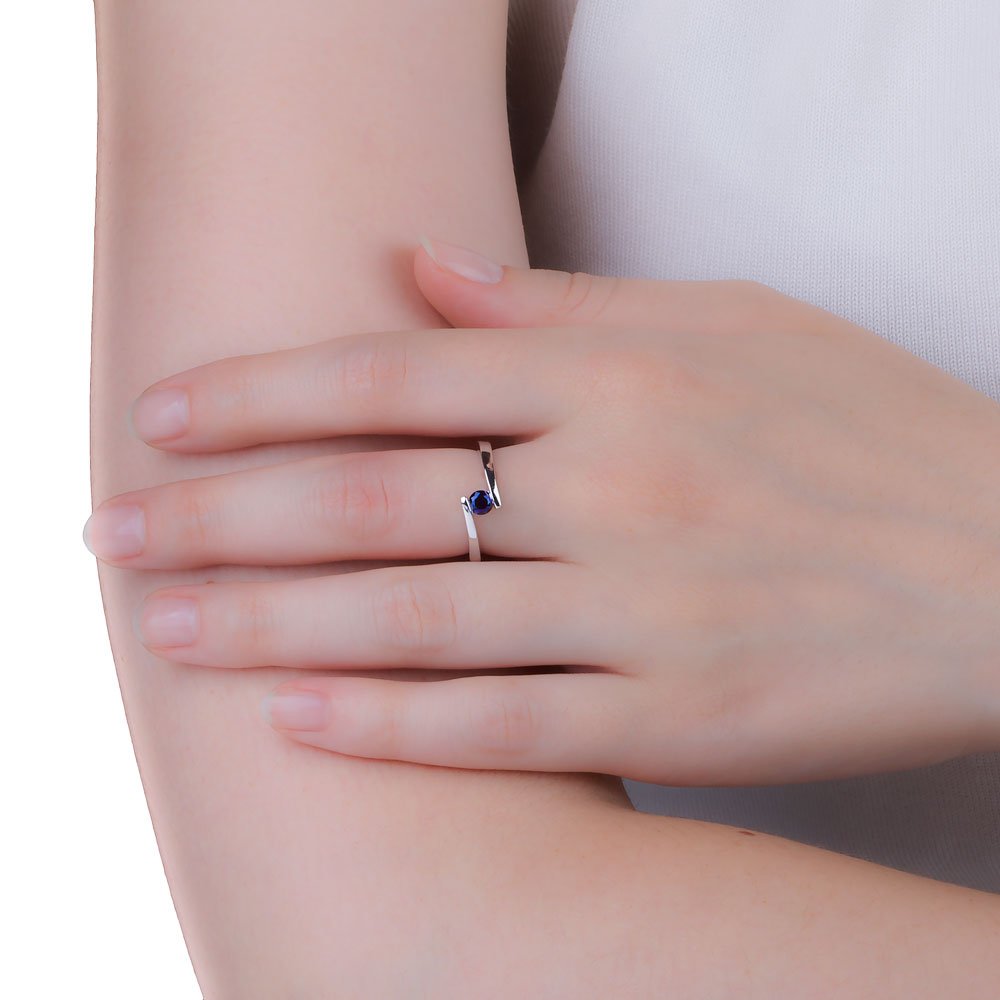 Stack up on style with this elegant and classic Round Brilliant Cut Laboratory-Grown Blue Sapphire Crossover Ring in Sterling Silver with Rhodium plating.