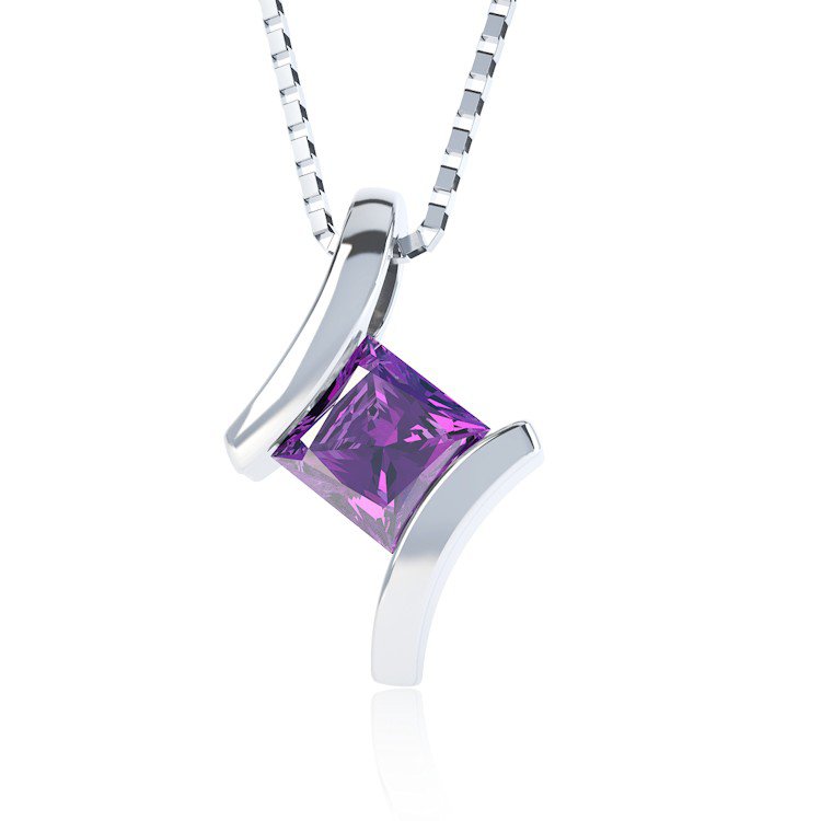 Adorn yourself with this simple yet elegant Princess cut Amethyst crossover pendant. Works with your everyday wardrobe, be it casual or dressy.
