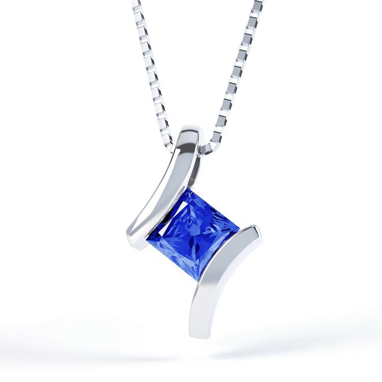 Adorn yourself with this simple yet elegant Princess cut Blue Sapphire crossover pendant. Works with your everyday wardrobe, be it casual or dressy.