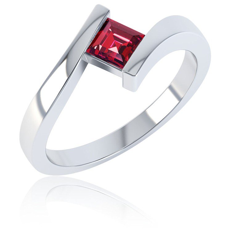 Stack up on style with this elegant and classic Square Step Cut Ruby Crossover Ring in Sterling Silver with Rhodium plating.