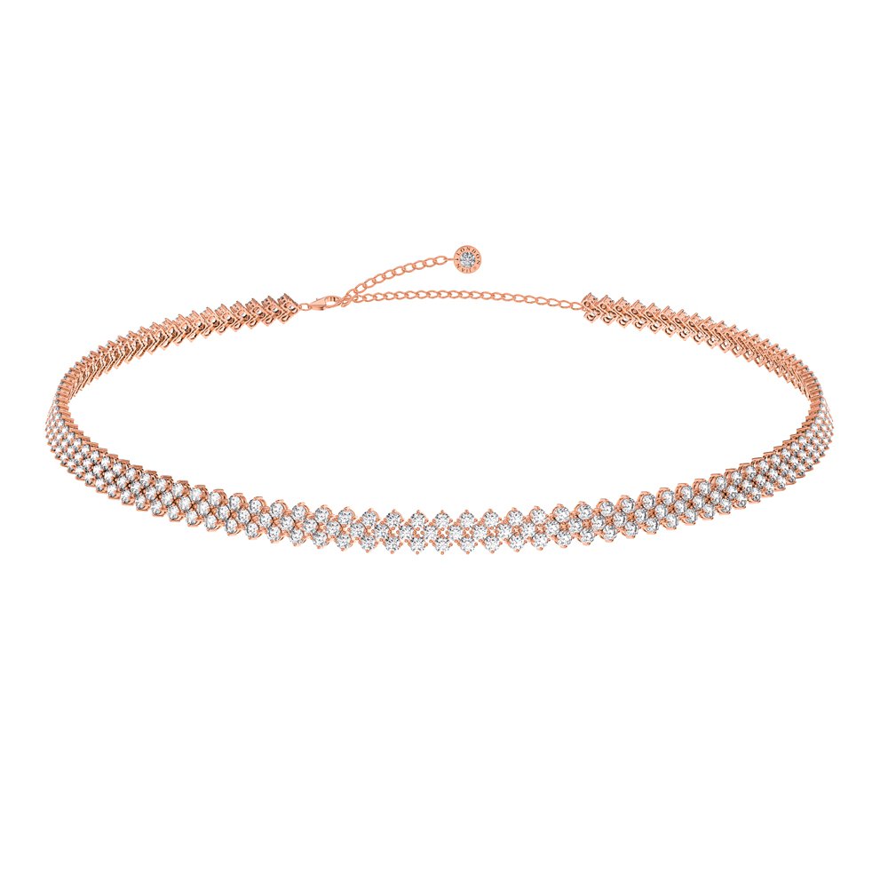 Timeless classic. Rich in brilliance, this three row adjustable tennis necklace, also can be worn as a choker or collar necklace, showcases 180 sparkling Moissanite in prong setting