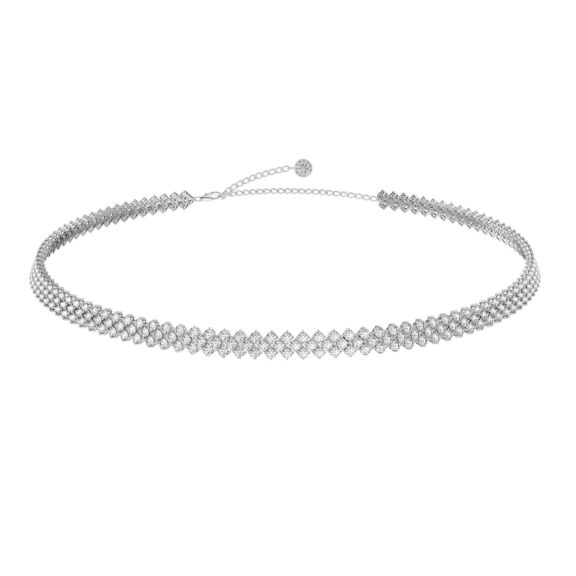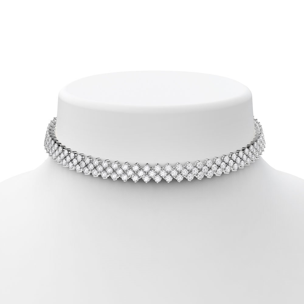 Timeless classic. Rich in brilliance, this three row adjustable tennis necklace, also can be worn as a choker or collar necklace, showcases 180 sparkling Moissanite in prong setting