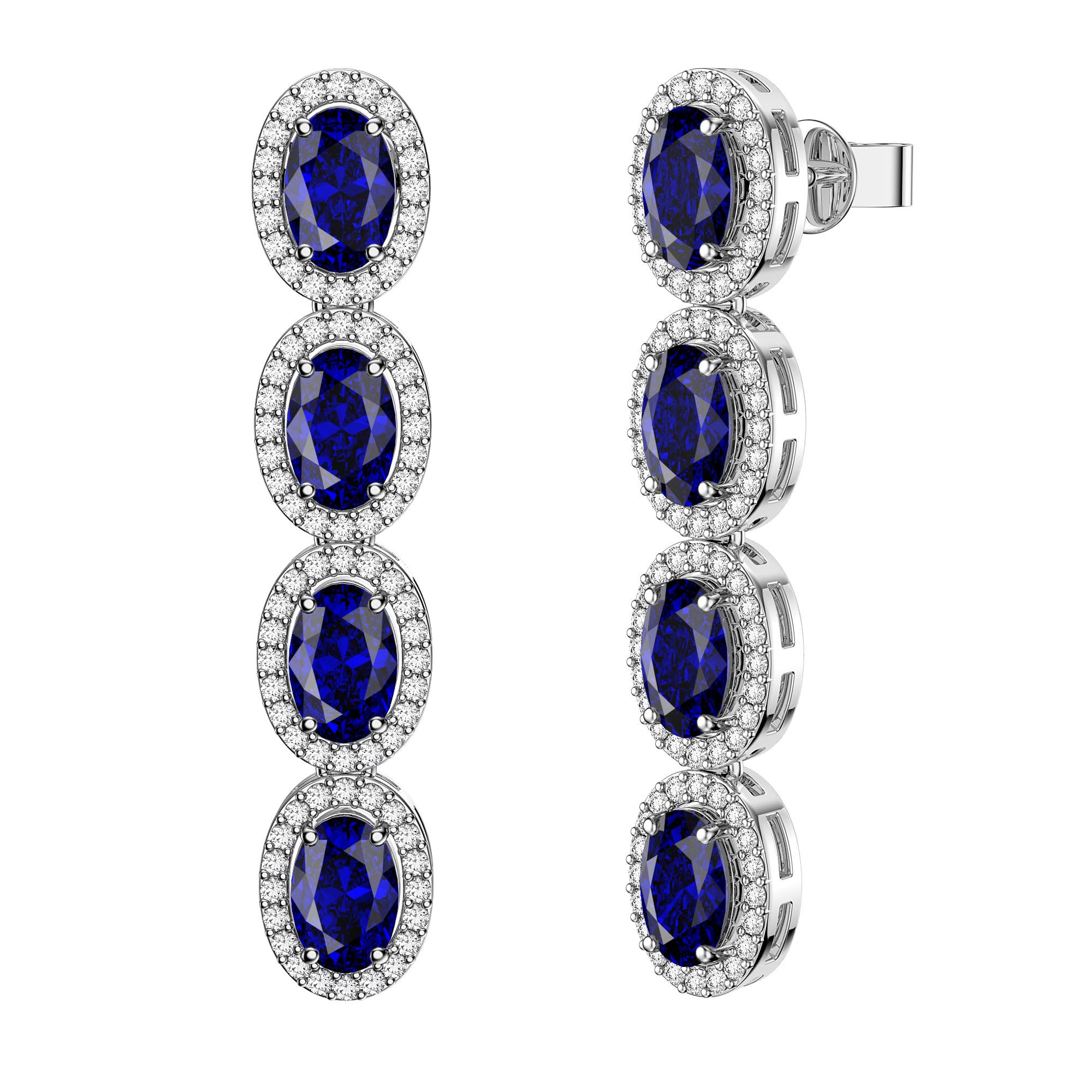 Approx. 4ct (8 x 4mm by 6mm oval) Laboratory-Grown Blue SapphireApprox. 0.4ct (160 x 1mm) Laboratory-Grown White Sapphire Halo