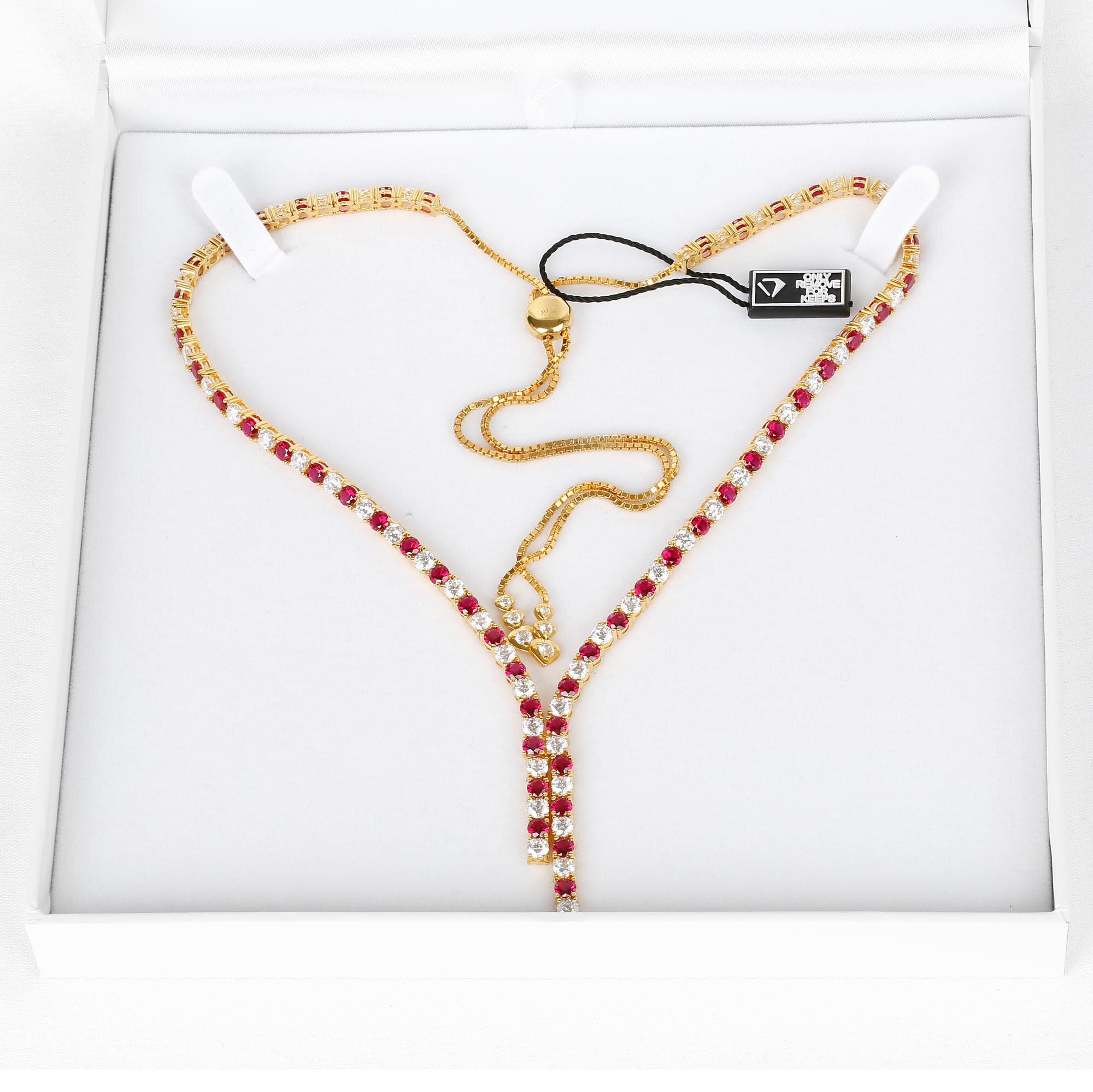 Tennis Necklace length 15 inch (38cm) with 7 inch (18cm) silver chain on each side of adjustable clasp, total length 29 inches (73cm)