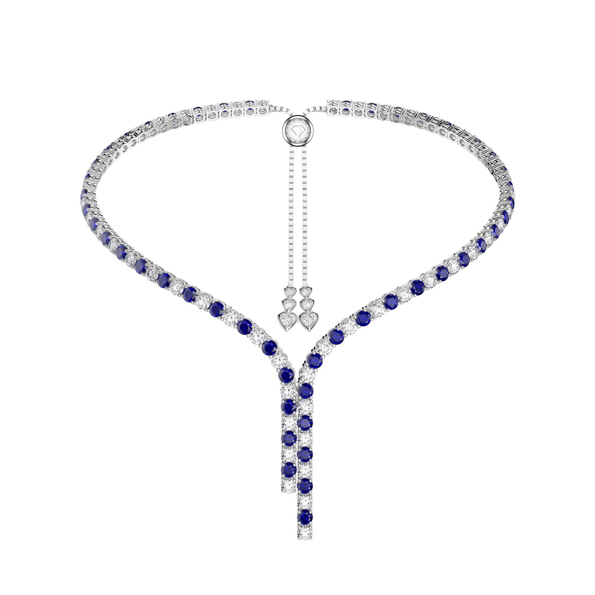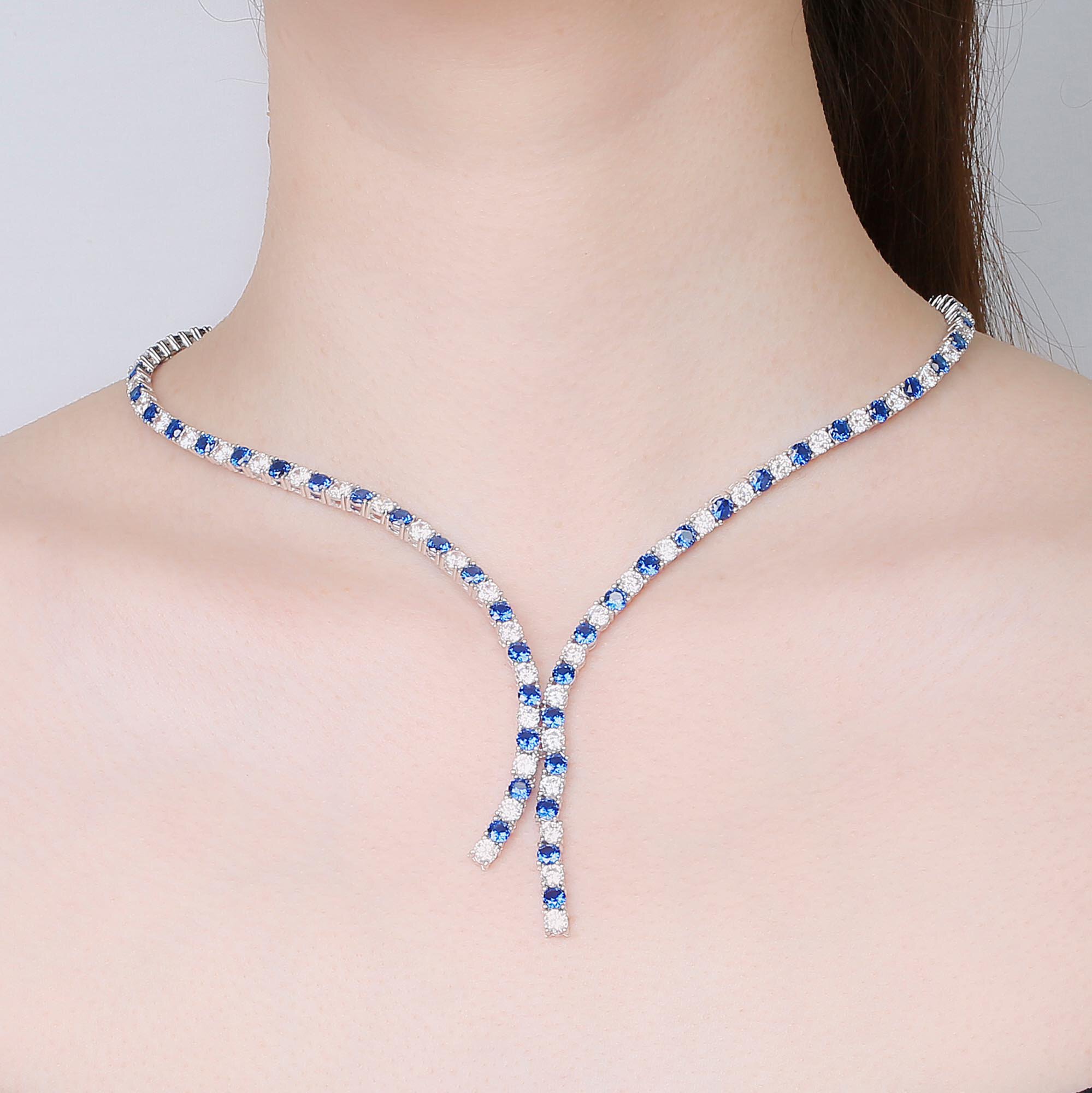 Tennis Necklace length 15 inch (38cm) with 7 inch (18cm) silver chain on each side of adjustable clasp, total length 29 inches (73cm)