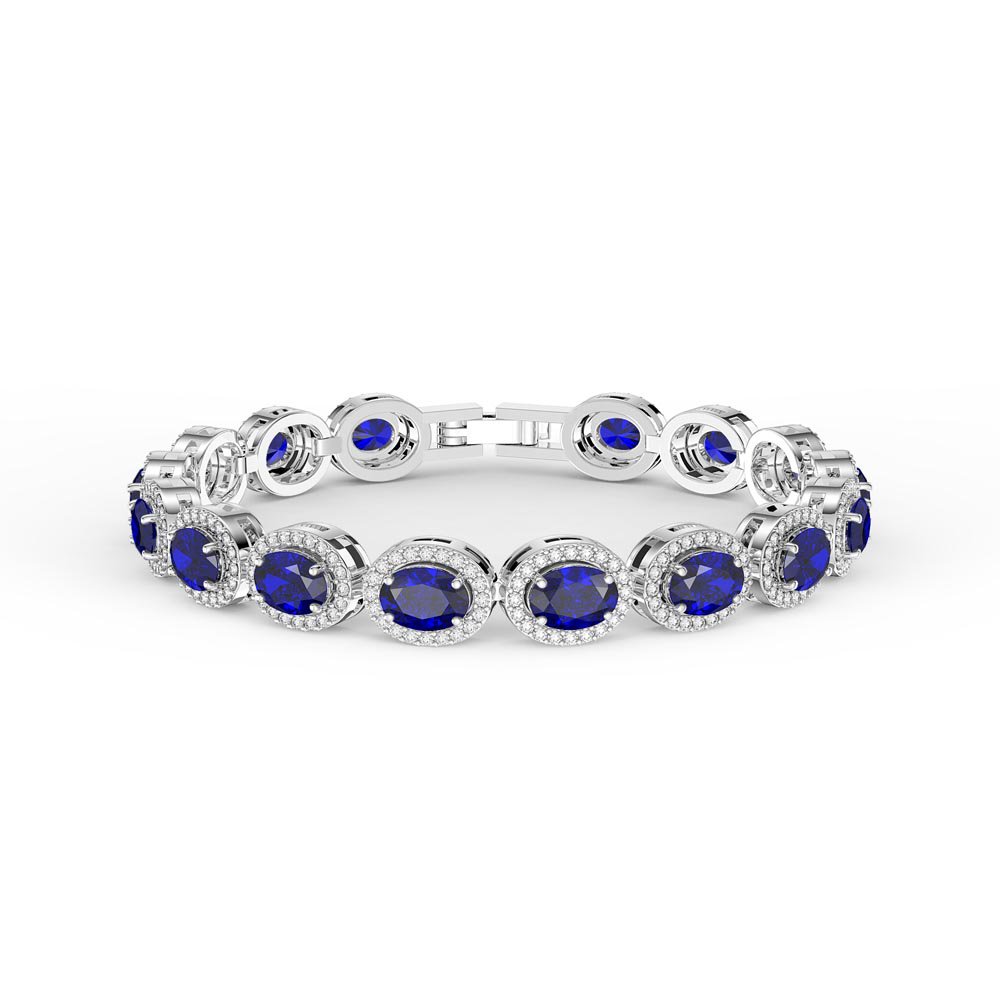 Approx. 8.5ct (17 x 4mm by 6mm) Laboratory-Grown Blue Sapphire and 1.7ct (340 x 1.0mm) EF/VVS Moissanite for 7.0Inch Bracelet