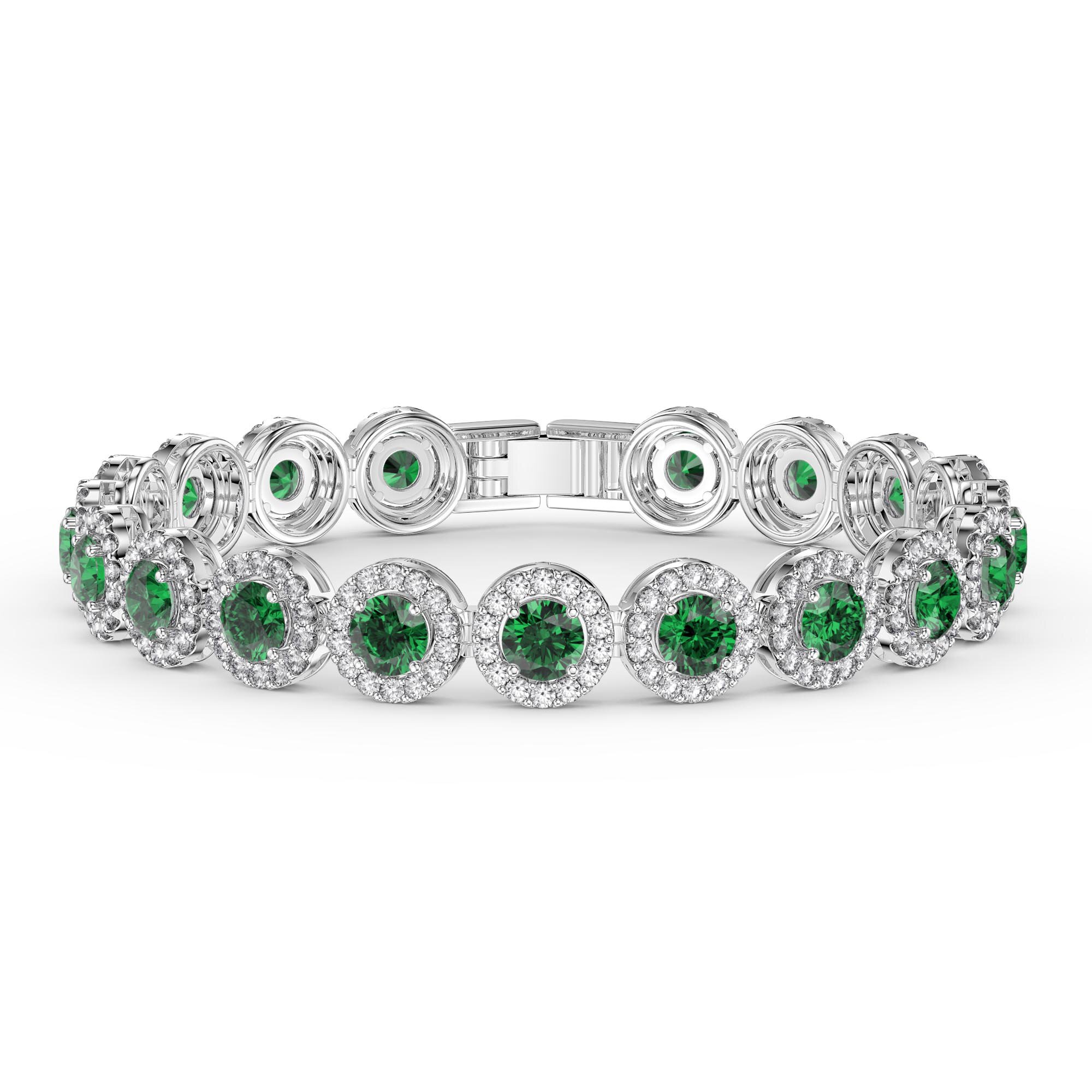 A great complement to any style. This beautifully made bracelet showcases stunning gemstones accented with sparkling halo of pave-set white Sapphire