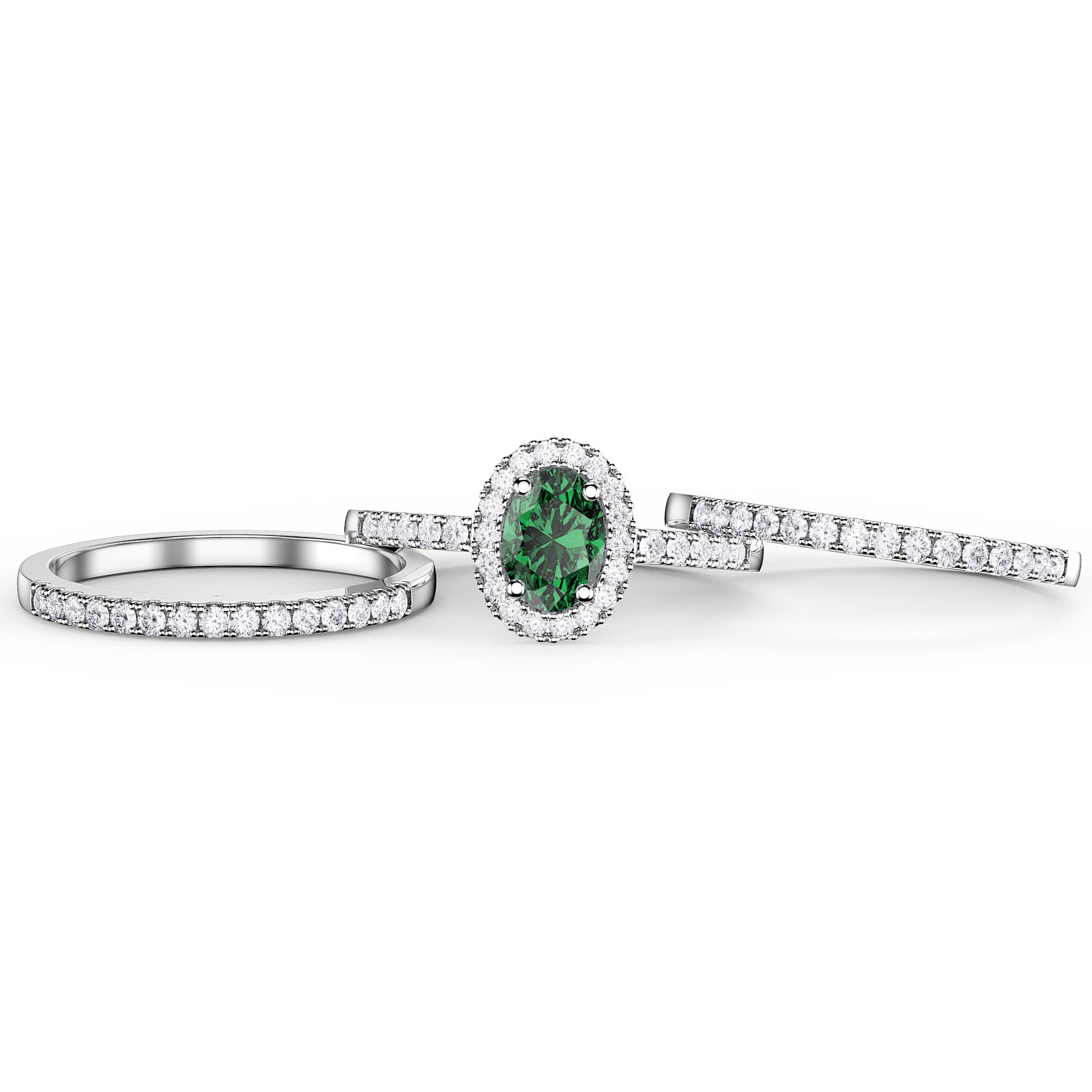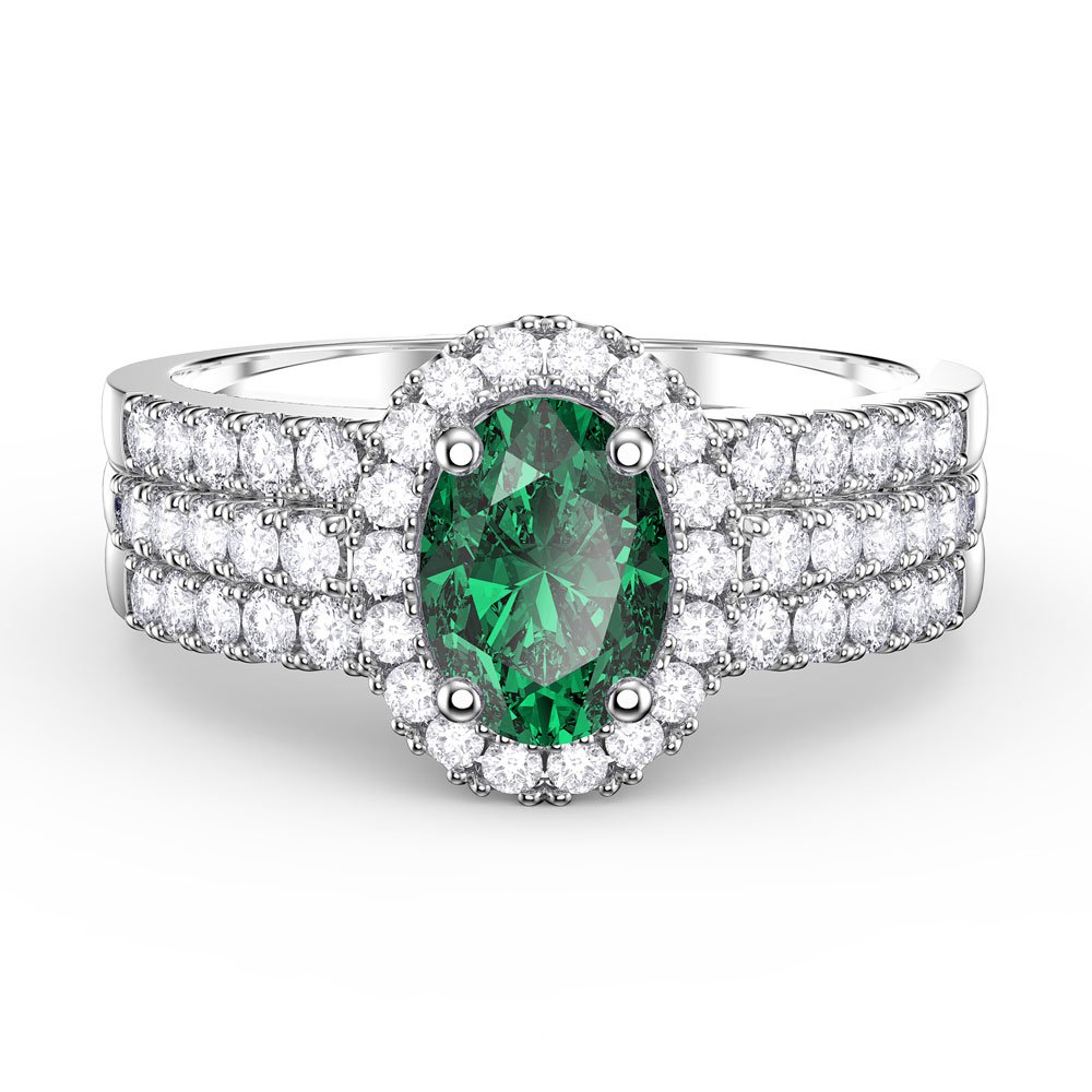 Approx. 0.75ct 5mm by 7mm Oval Laboratory-Grown Emerald and Approx. 0.30ct (10 x 1.5mm, 18 x 1.2mm) EF VVS Moissanite