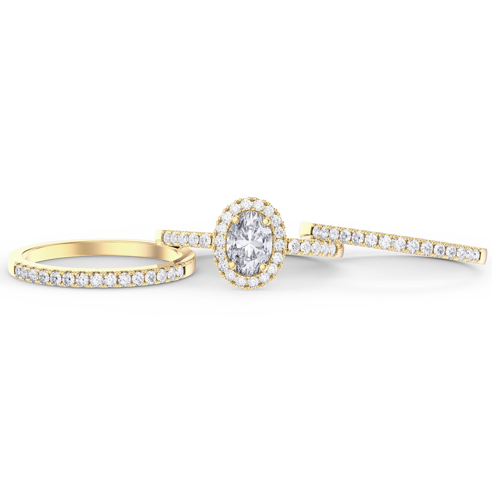 Approx. 0.75ct 5mm by 7mm oval EF VVS Moissanite and Approx. 0.28ct (10 x 1.5mm, 18 x 1.2mm) EF VVS Moissanite