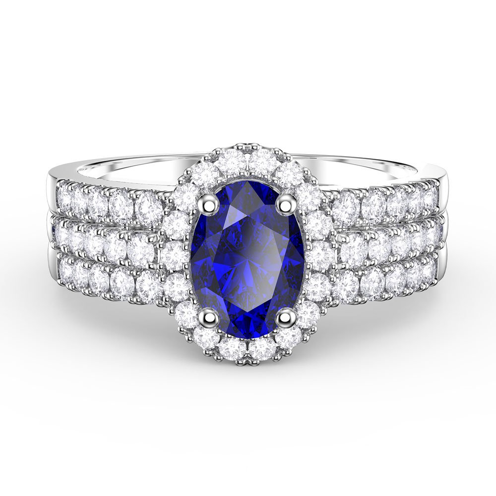 Approx. 0.75ct 5*7mm Laboratory-Grown Blue Sapphire and Approx. 0.30ct (10 x 1.5mm, 18 x 1.2mm) Laboratory-Grown EF VS Diamonds Halo