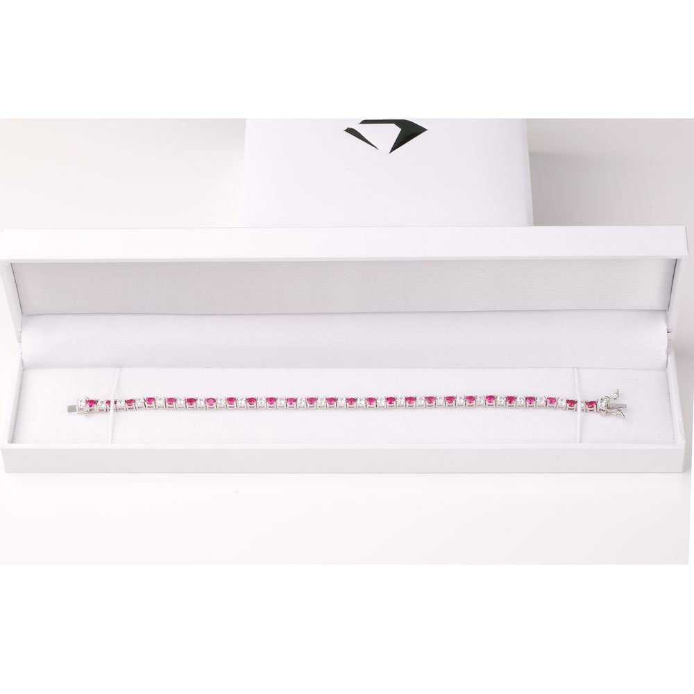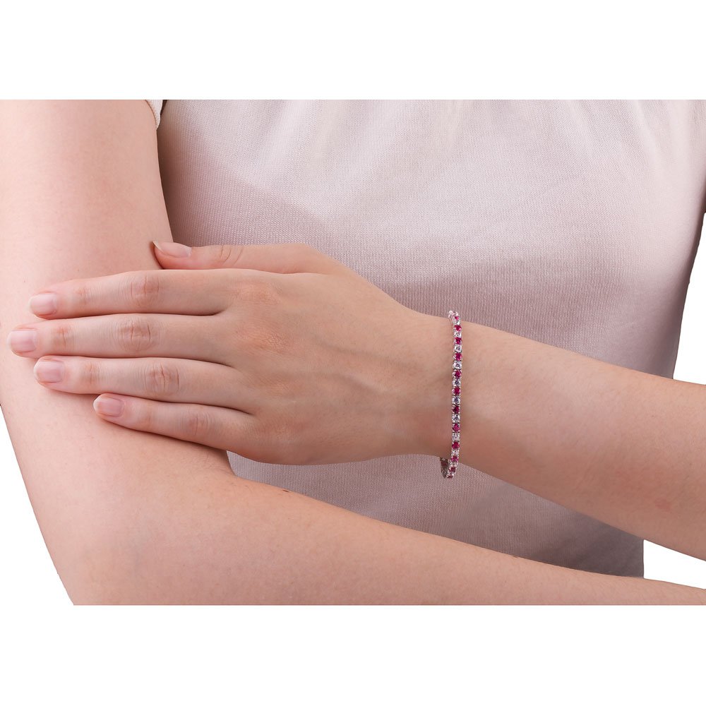 Stunning Laboratory-Grown Rubies and Laboratory-Grown White Sapphire set in a classic Sterling Silver Tennis Bracelet.