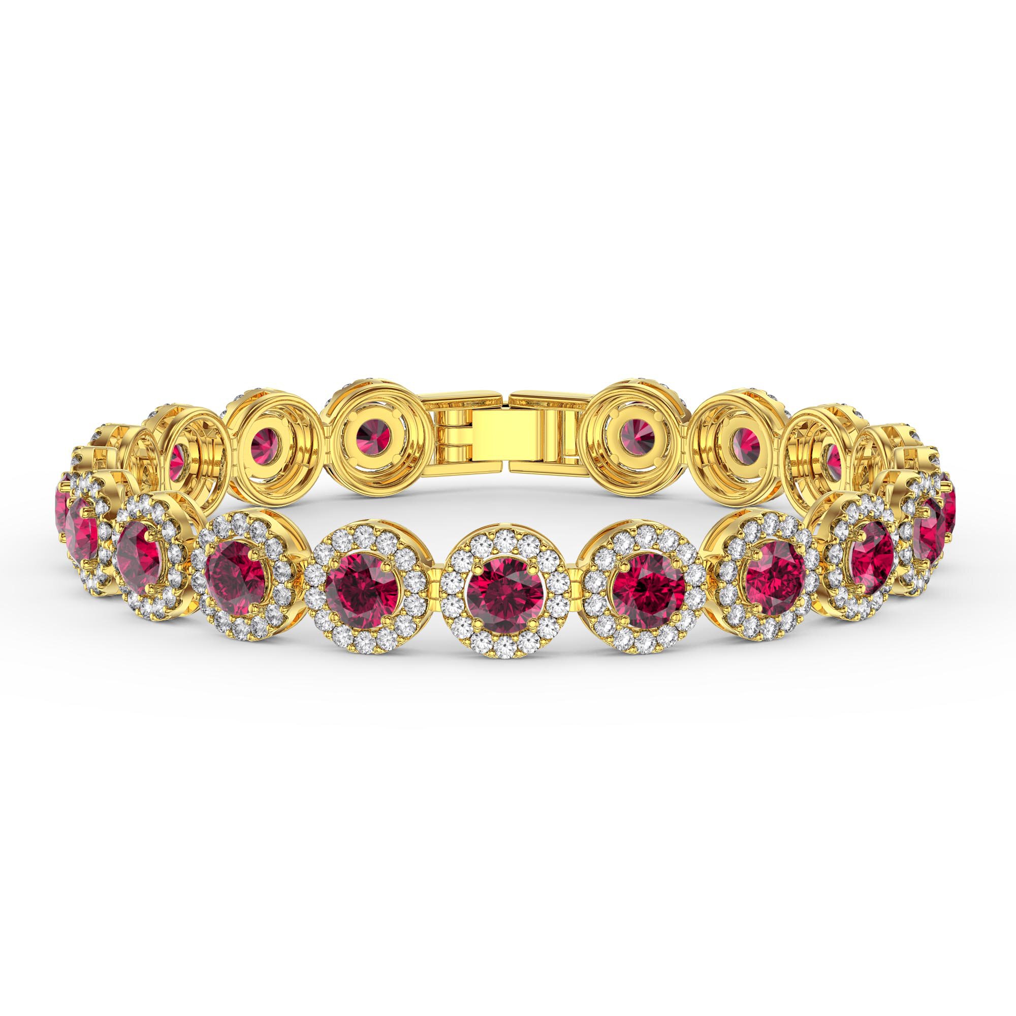 A great complement to any style. This beautifully made bracelet showcases stunning gemstones accented with sparkling halo of pave-set white Sapphire