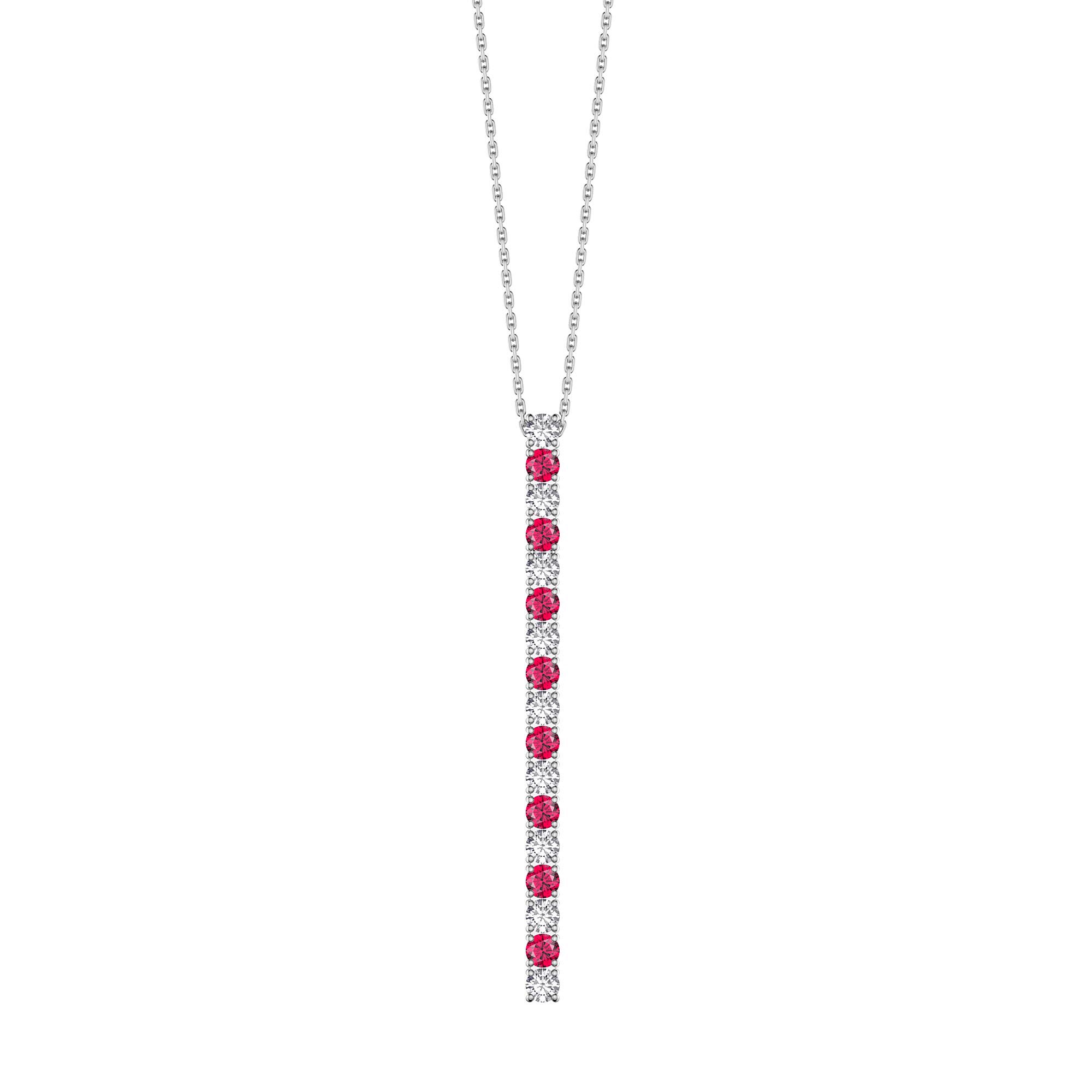 Elegant and simple, these drop pendant features round brilliant cut gemstones claw set onto bars of silver. Their elegance lies in the purity of a line that makes them a timeless addition to any woman's wardrobe, the perfect pendant necklace to take you from day to night.