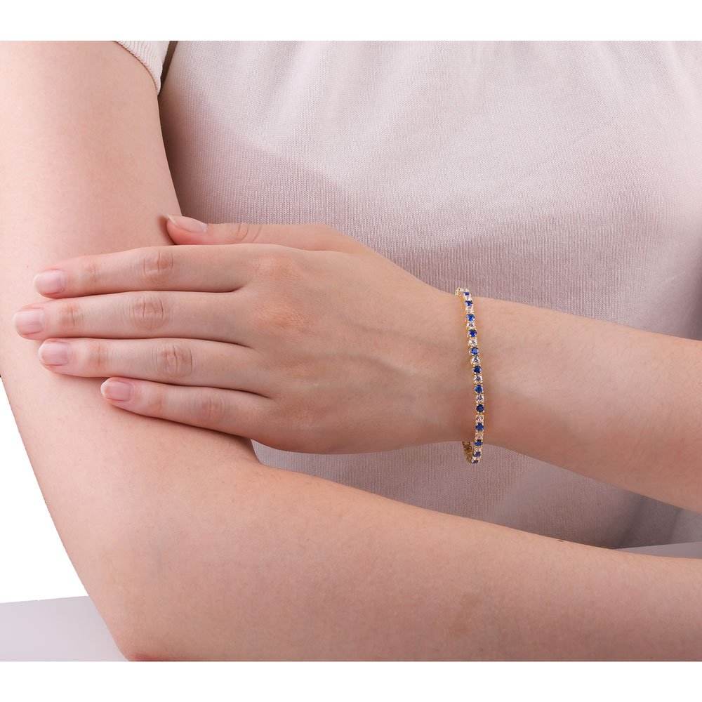 Stunning Laboratory-Grown Blue and White Sapphire set in a classic Sterling Silver Tennis Bracelet
