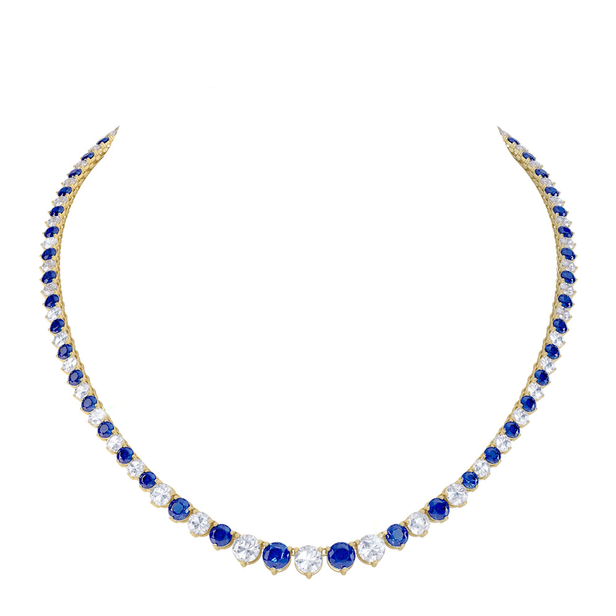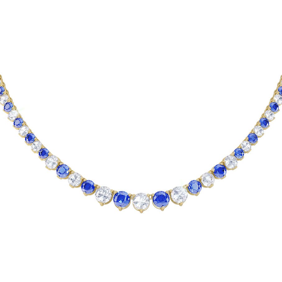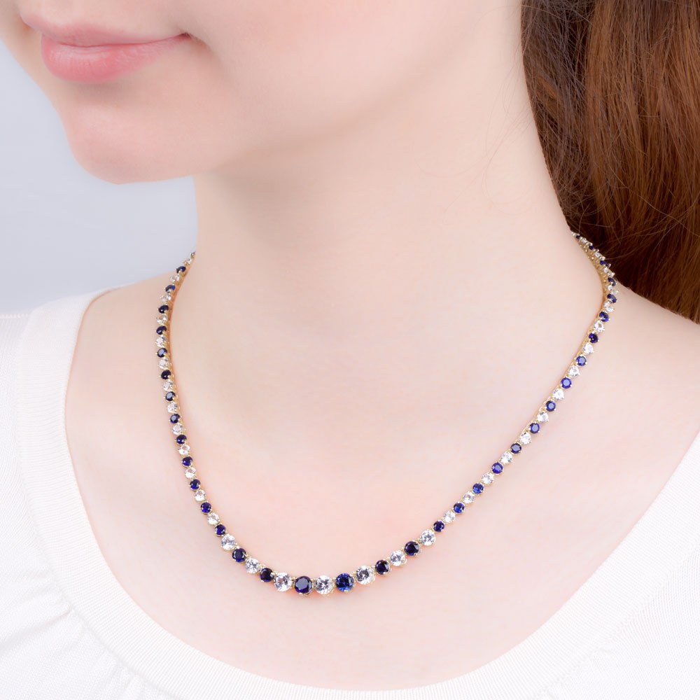 Approx. 7.1ct (3 x 5mm, 4 x 4mm, 47 x 3mm) Simulated Sapphire and 6.7ct (2 x 5mm, 4 x 4mm 47 x 3mm) Simulated Diamonds for 16Inches Necklace