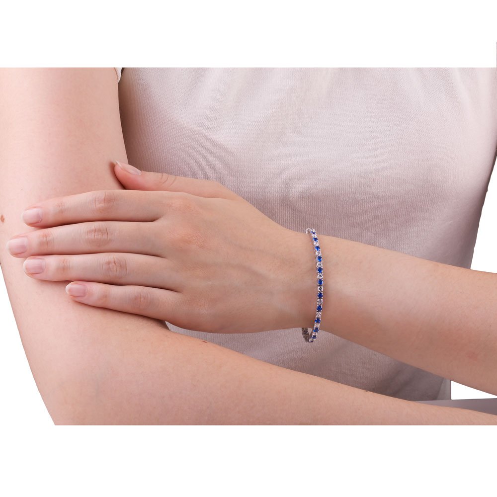 Approx. 2.3ct (23 x 3mm) Simulated Sapphire and 2.3ct (23 x 3mm) Simulated Diamonds (CZ)for 7Inches bracelet