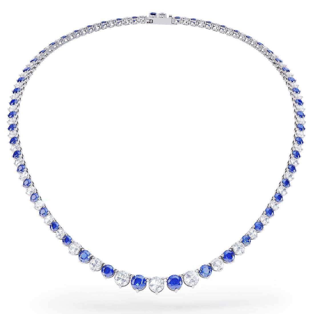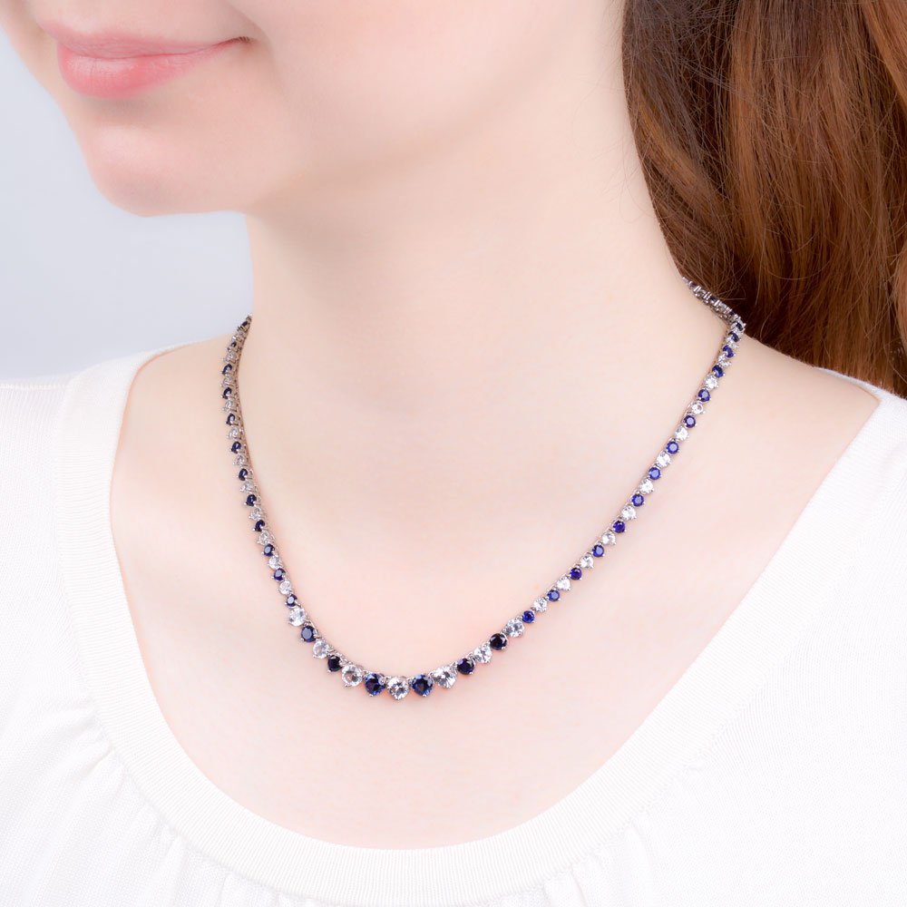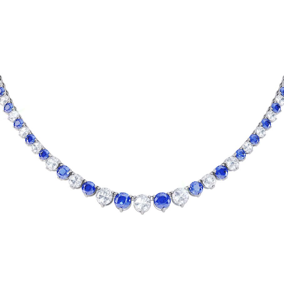 Approx. 7.1ct (3 x 5mm, 4 x 4mm, 47 x 3mm) Simulated Sapphire and 6.7ct (2 x 5mm, 4 x 4mm 47 x 3mm) Simulated Diamonds for 16Inches Necklace