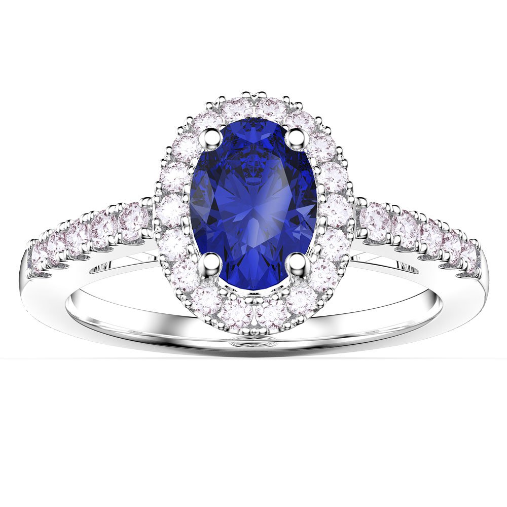 Approx. 0.75ct 5*7mm Laboratory-Grown Blue Sapphire and Approx. 0.30ct (10 x 1.5mm, 18 x 1.2mm) Laboratory-Grown EF VS Diamonds