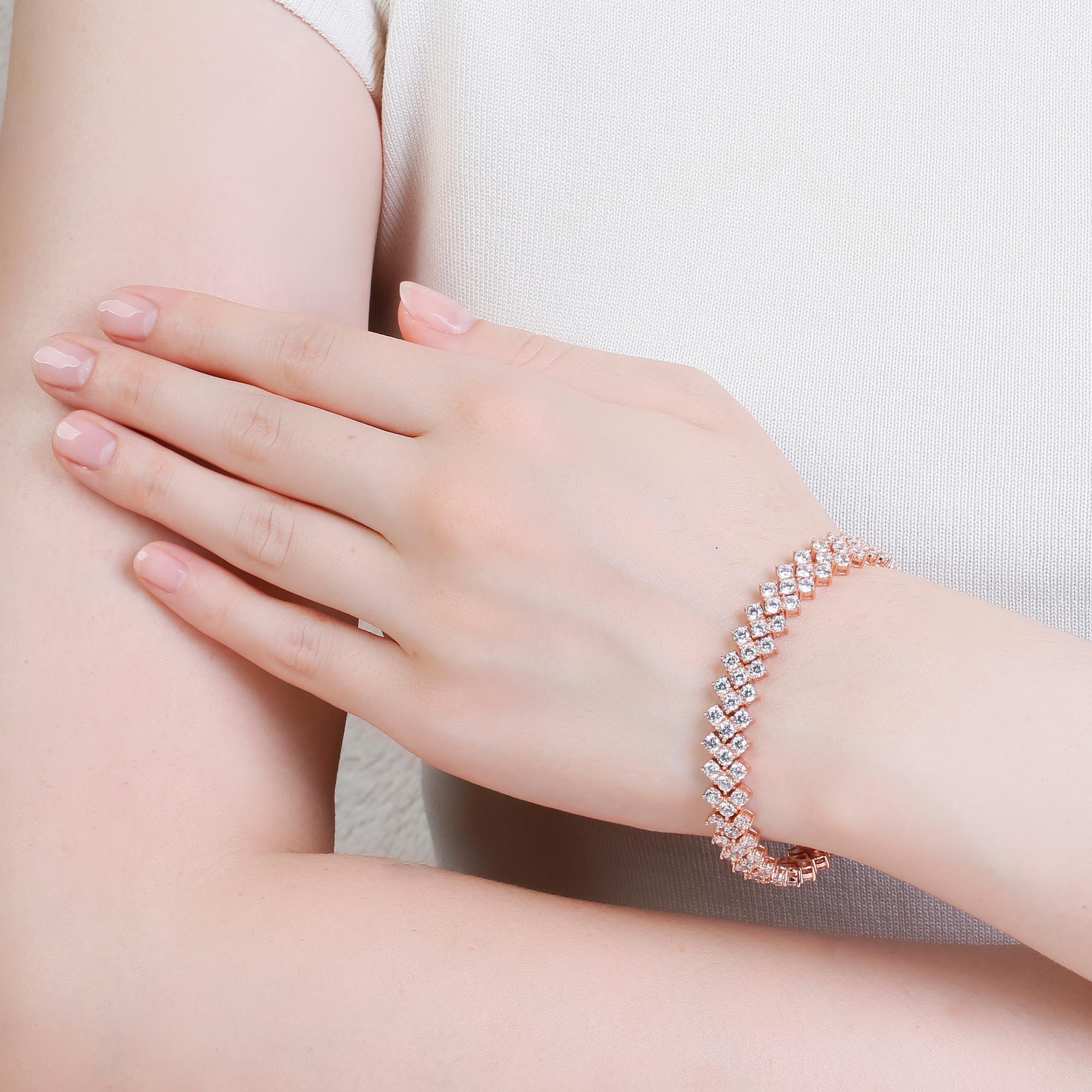 Timeless classic. Rich in brilliance, this three row adjustable bracelet showcases sparkling Diamond CZ in prong setting