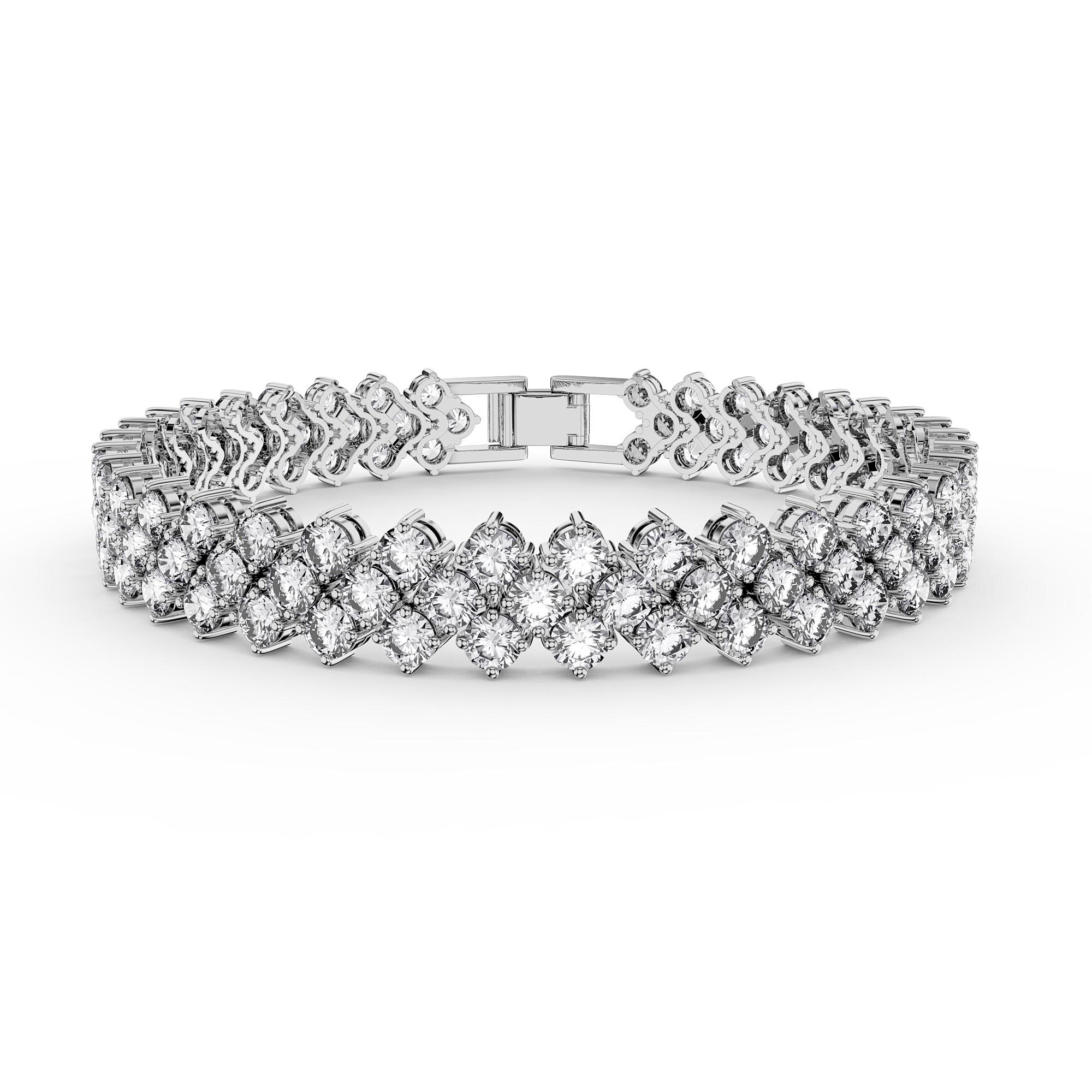 Timeless classic. Rich in brilliance, this three row bracelet showcases sparkling Diamond CZ in prong setting
