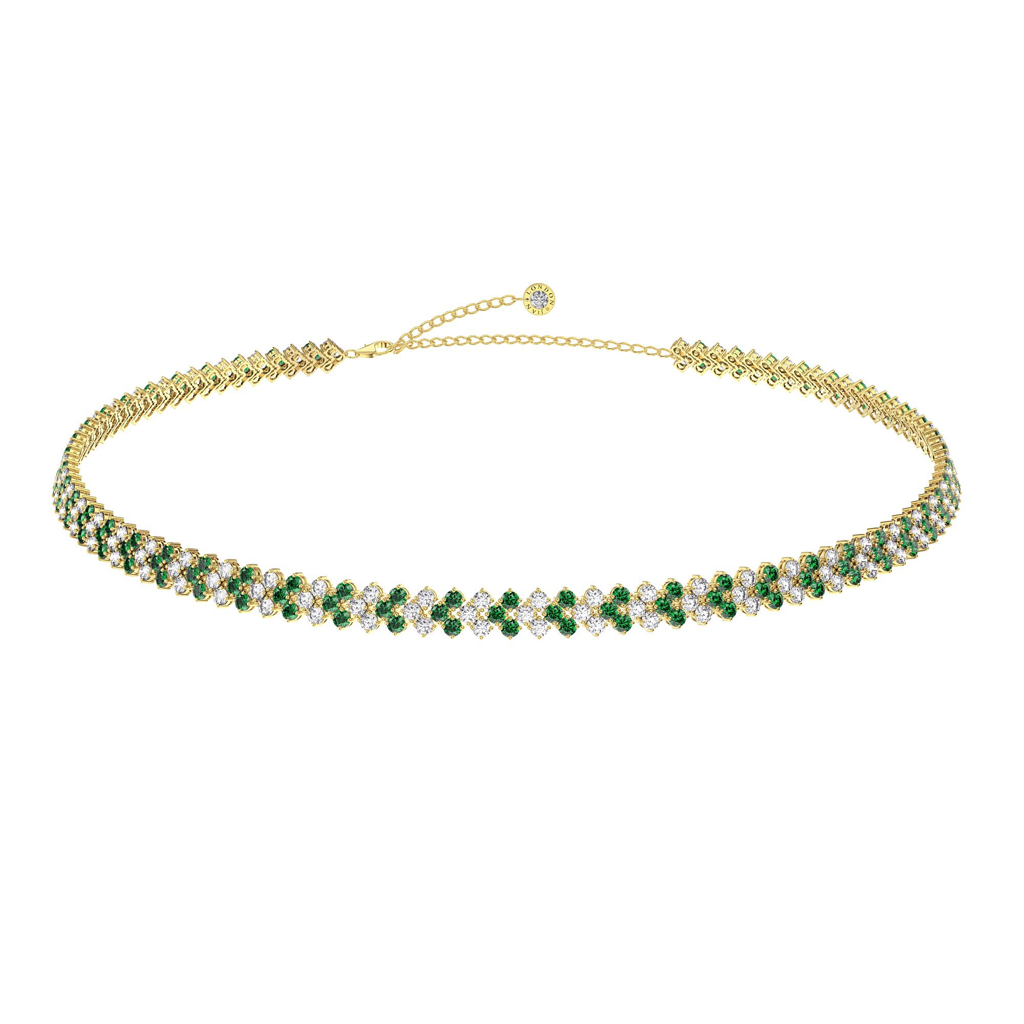 Timeless classic. Rich in brilliance, this three row adjustable tennis necklace, also can be worn as a choker or collar necklace, showcases 180 sparkling Emerald and Diamond CZ in prong setting