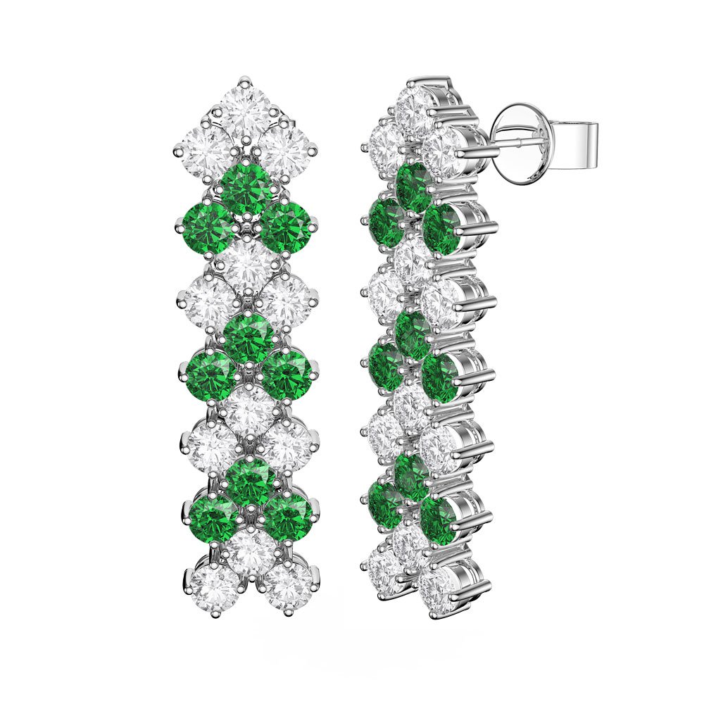 Timeless classic, this glamours drop earrings showcases 42 sparkling Emerald and Diamond CZ in prong setting