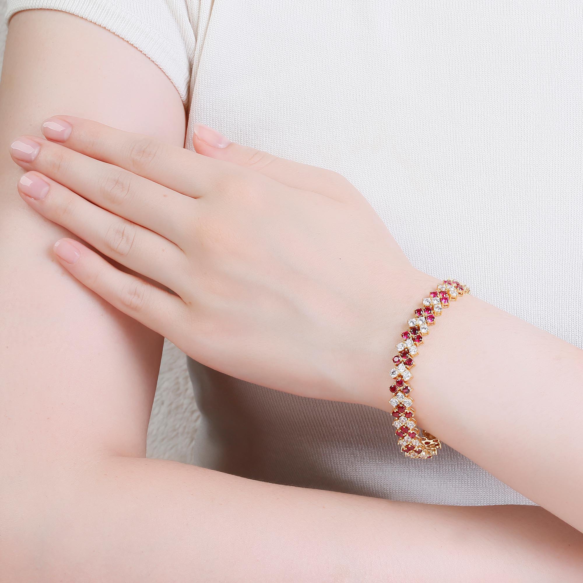 Approx. 5.3ct (53 x 3mm) Laboratory-Grown Ruby and 5.4ct (54 x 3mm) Simulated Diamonds for 7inch Bracelet