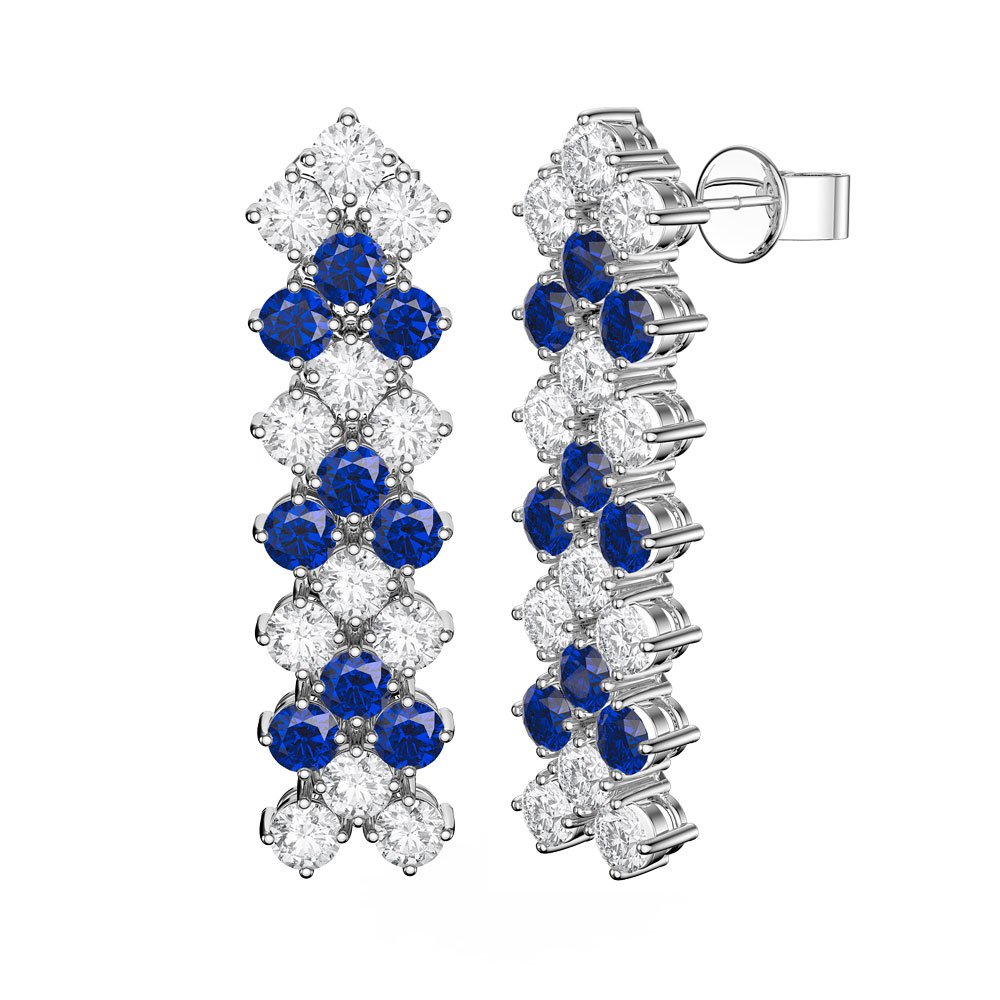 Timeless classic, this glamours drop earrings showcases 42 sparkling Sapphire and Diamond CZ in prong setting