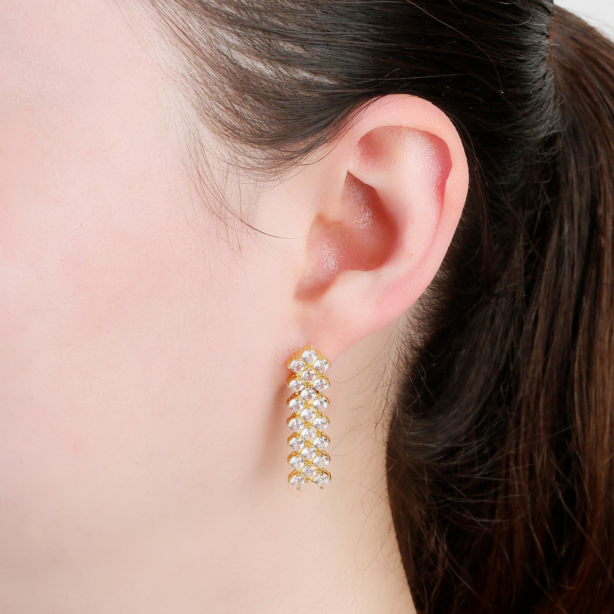 Timeless classic, this glamours drop earrings showcases 42 sparkling White Sapphire in prong setting