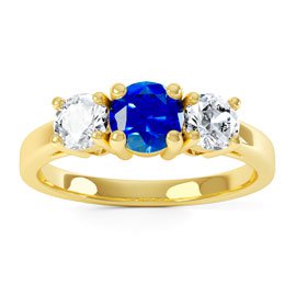 Approx. 0.5ct 5mm Laboratory-Grown Blue Sapphire and Approx. 0.32ct (2 x 3.5mm) DE/VS Moissanite
