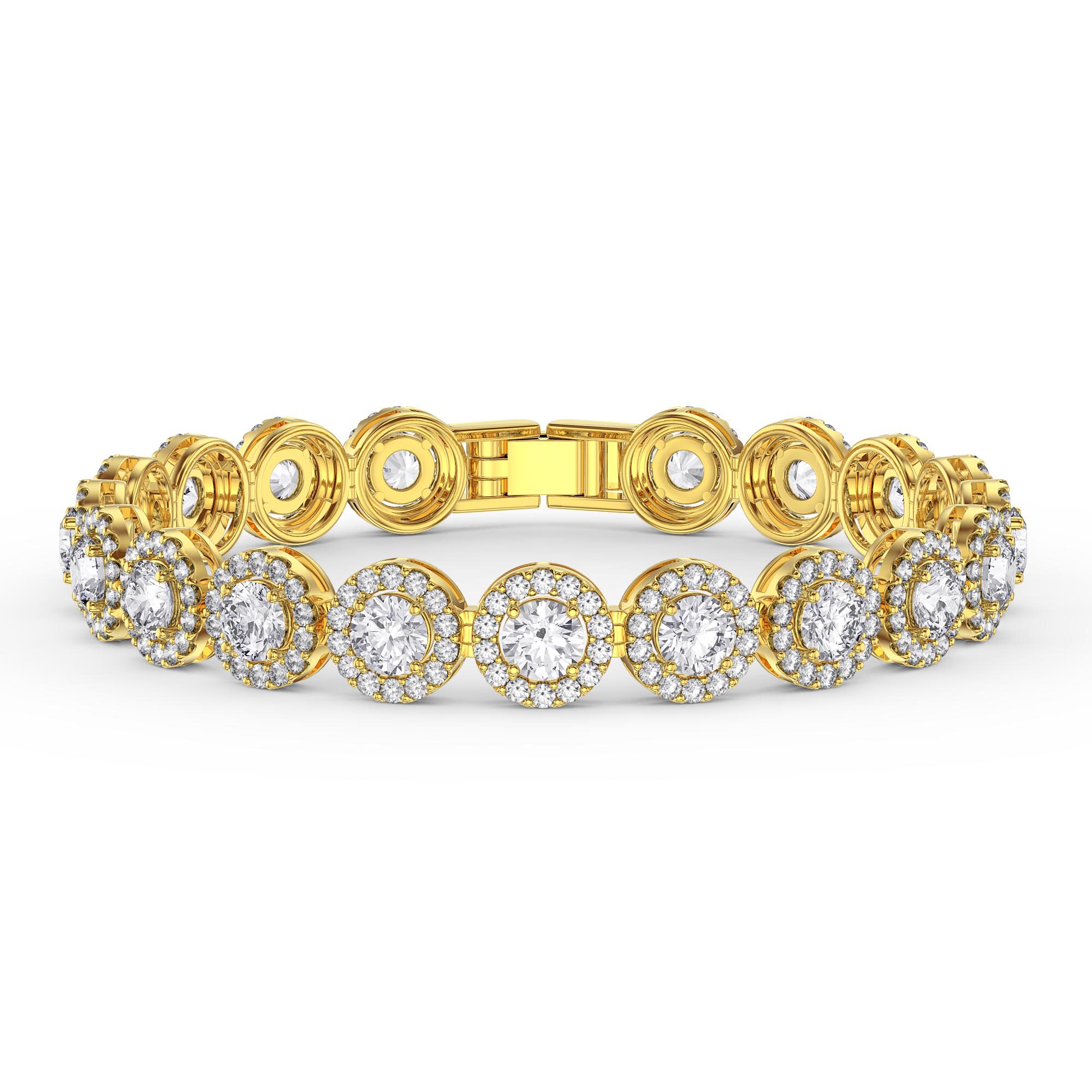 A great complement to any style. This beautifully made bracelet showcases stunning gemstones accented with sparkling halo of pave-set white Sapphire