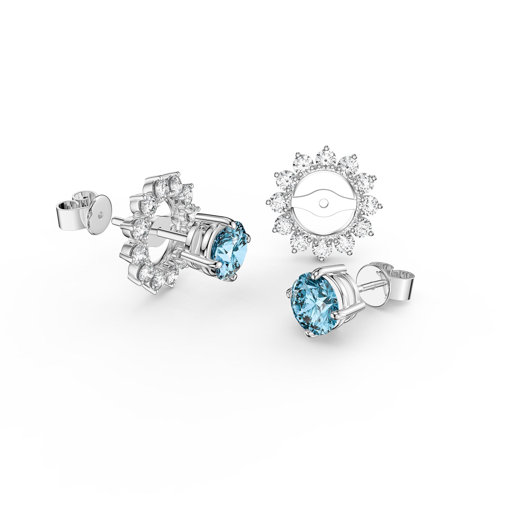 Exquisite Stud and Halo Earring Jacket SetsApprox. 1ct (2 of 5mm) natural Swiss Blue Topaz