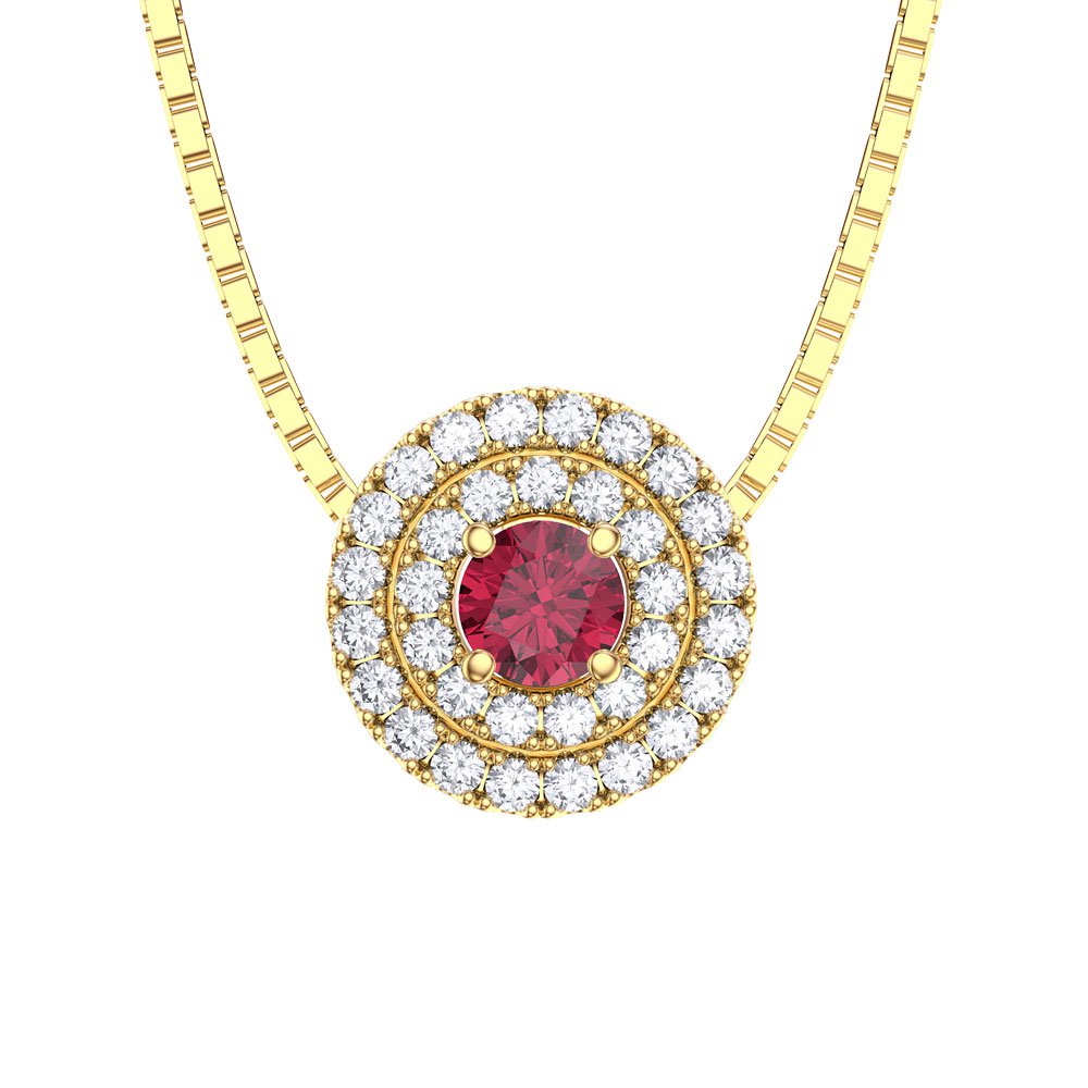 Stunning 0.16ct Laboratory-Grown Ruby surrounded by a Halo of gorgeous White Sapphires set in 18ct Gold or Sterling Silver with choice of Platinum or 18ct Gold finish.