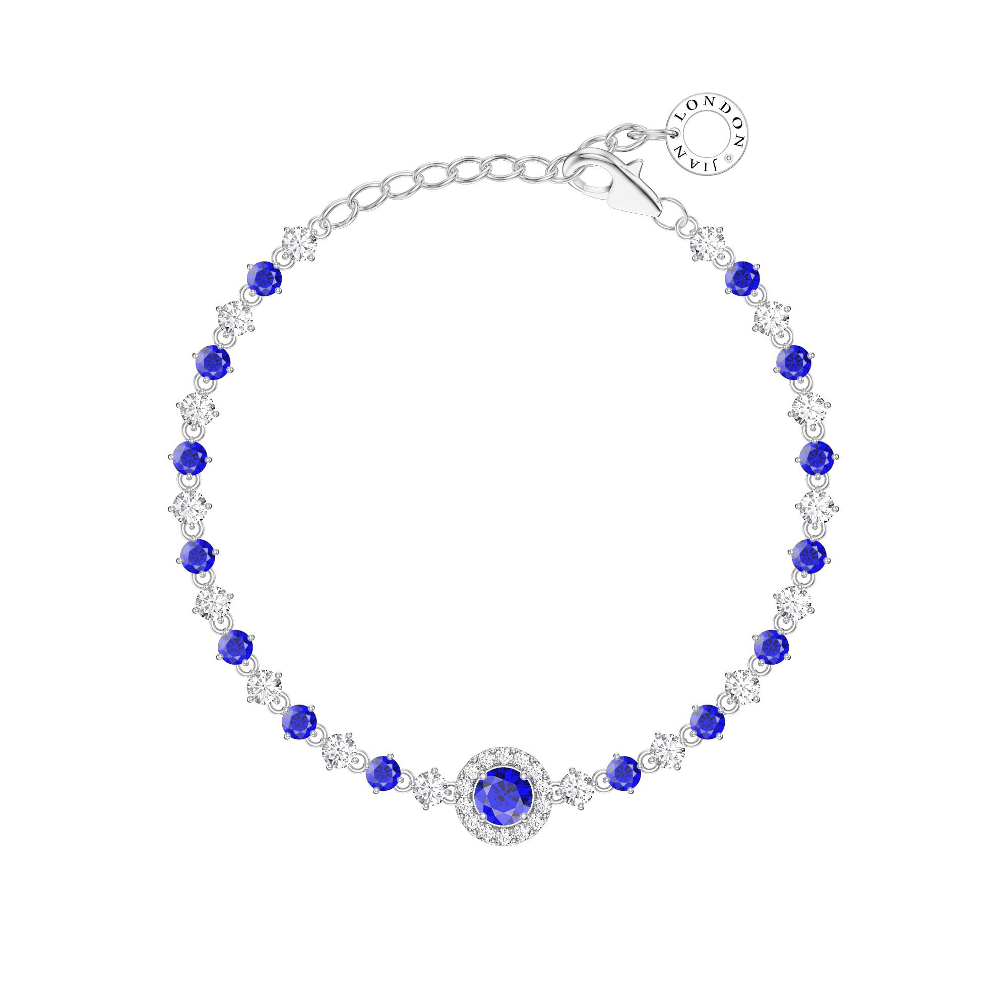 Approx. 3.7ct (1 x 5mm, 30 x 3mm, 14 x 1.5mm) Laboratory-Grown Sapphire and EF VVS Moissanite
