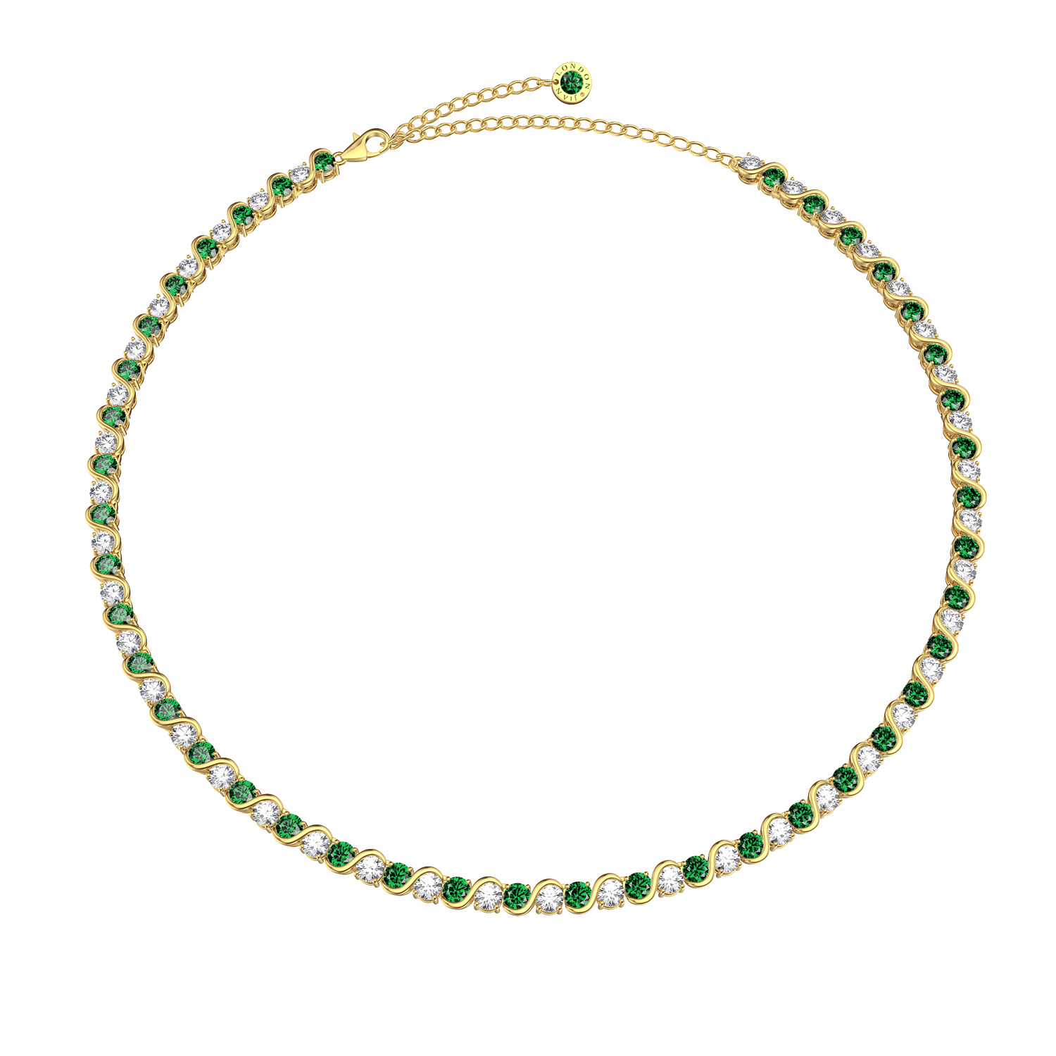Elegant and simple, this necklace features round gemstones claw set onto S bar of silver. A perfect combination of classic with a modern contemporary twist.