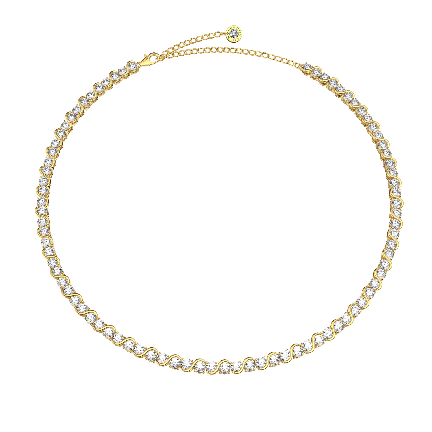 Elegant and simple, this necklace features round gemstones claw set onto S bar of silver. A perfect combination of classic with a modern contemporary twist.