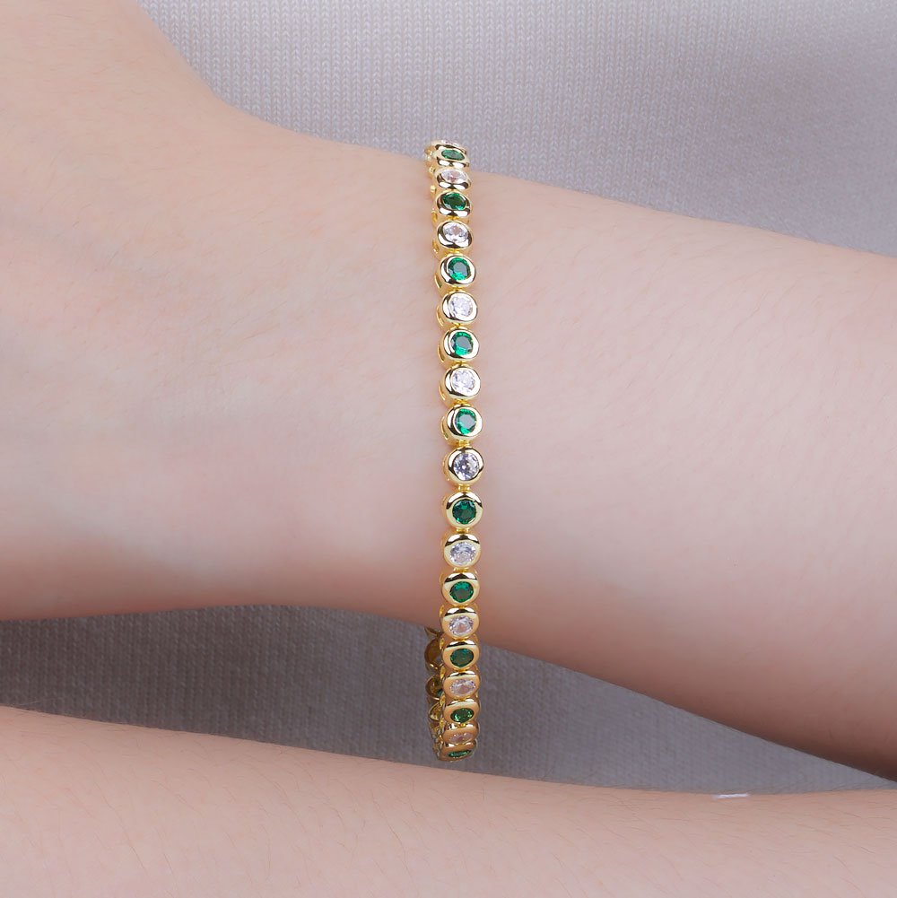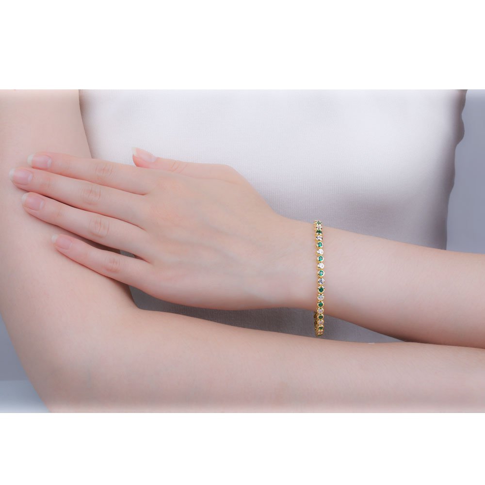 Approx. 3.6ct Simulated Emeralds and Laboratory-Grown White Sapphire for 7Inches Bracelet