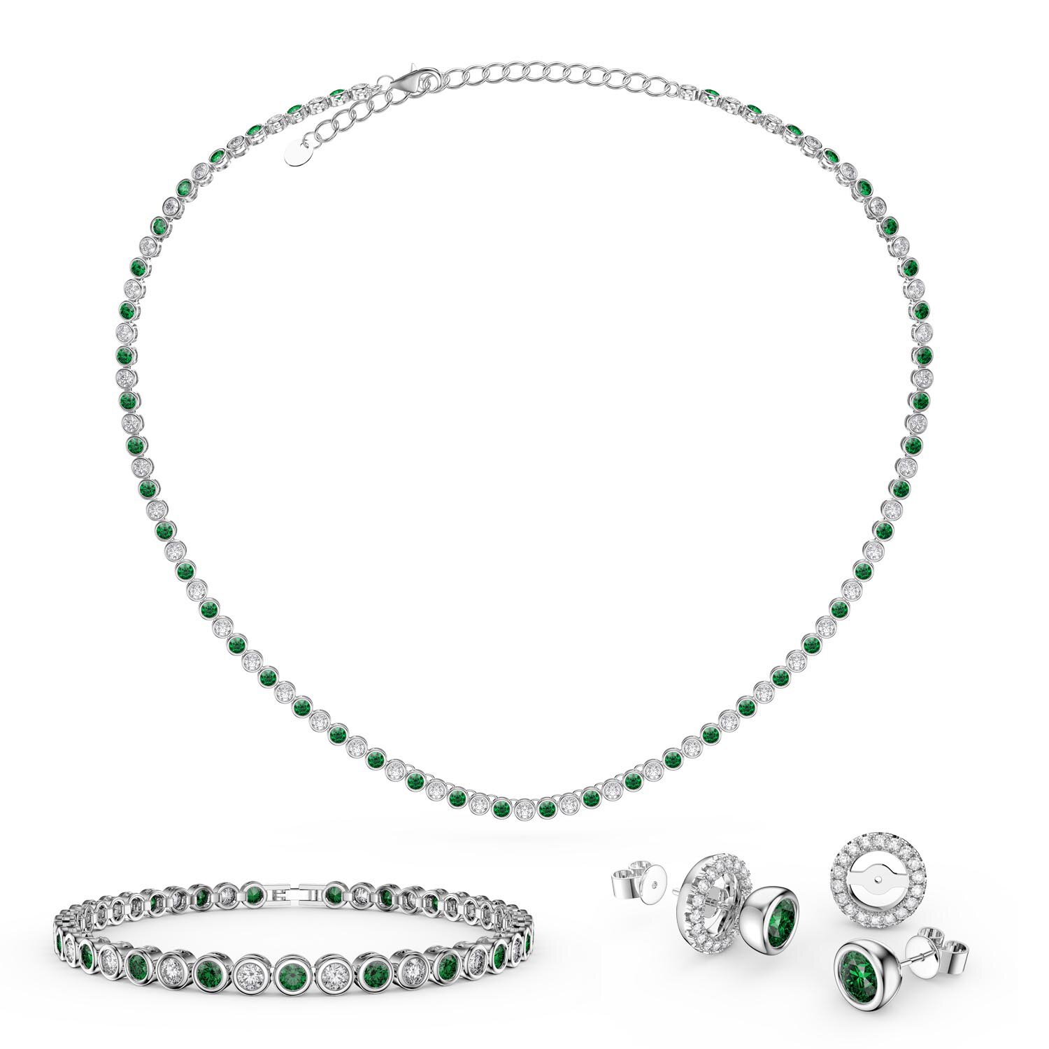 Perfect Simulated 3mm Emerald and Diamond CZ Necklace and Bracelet, 4mm width